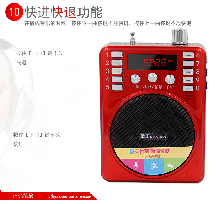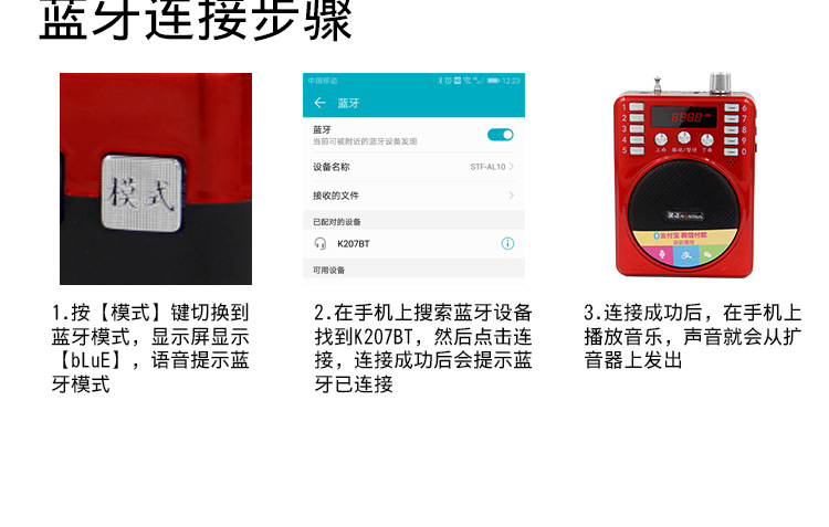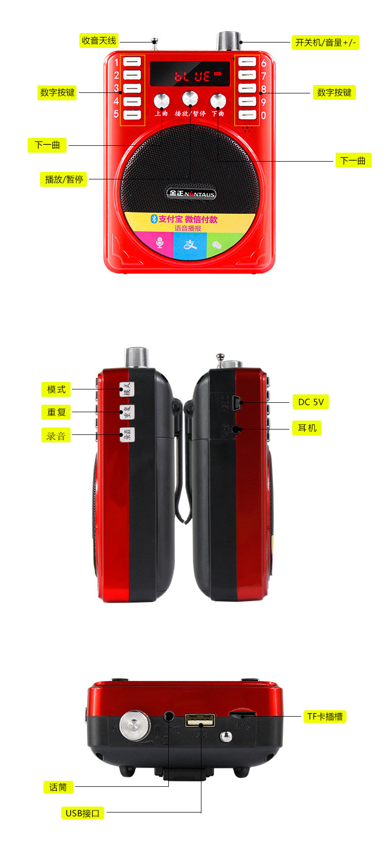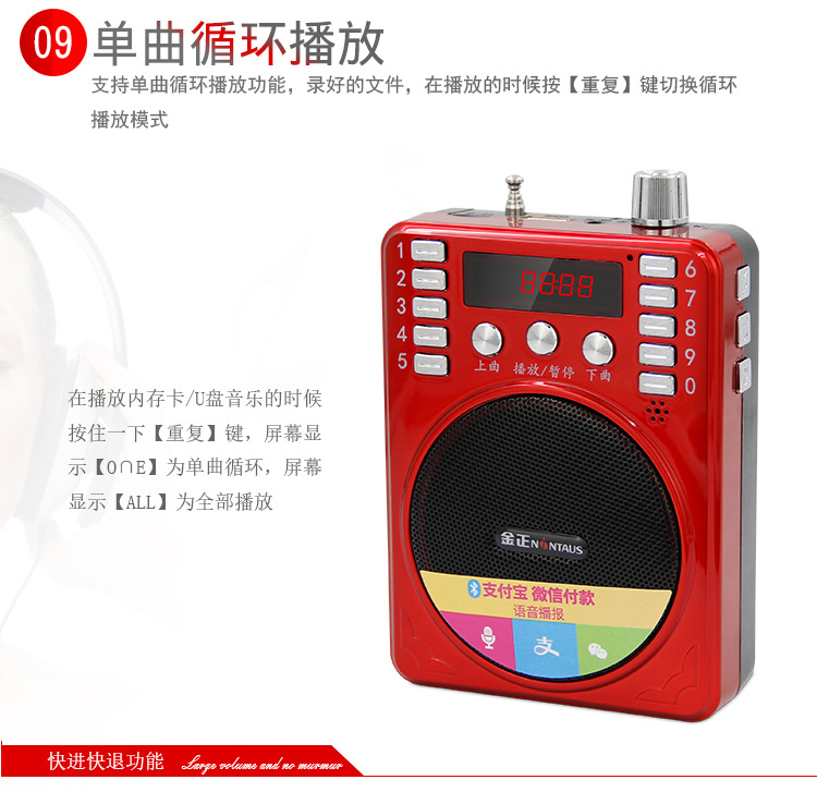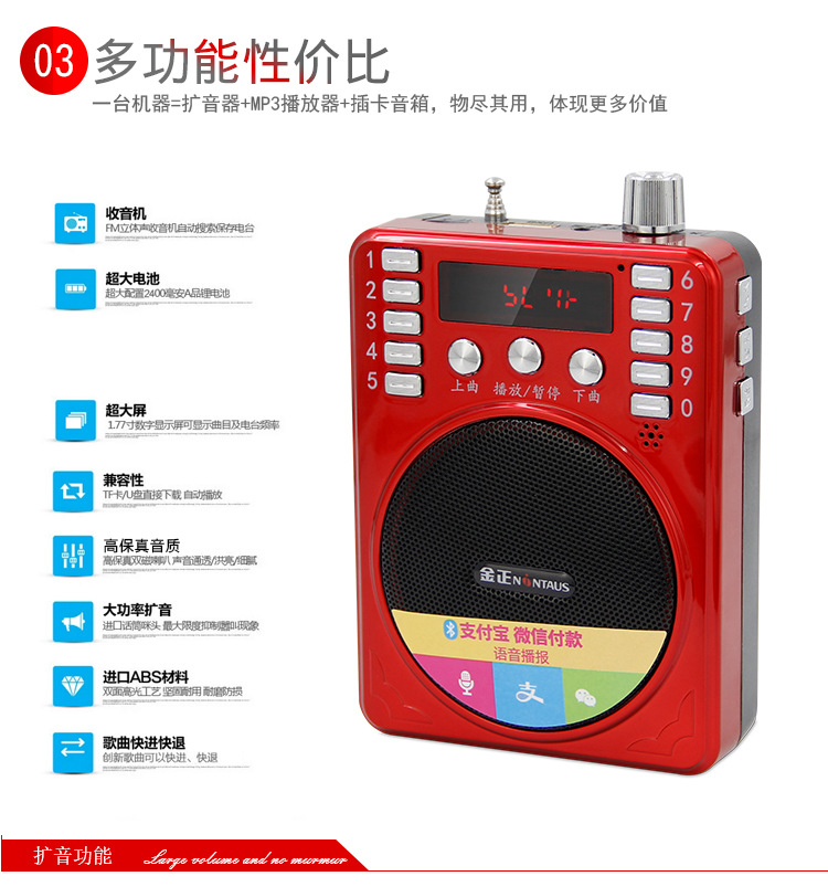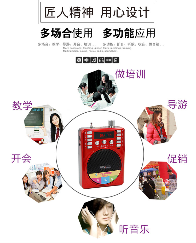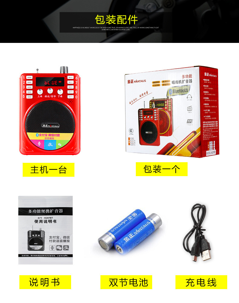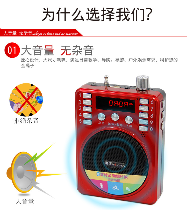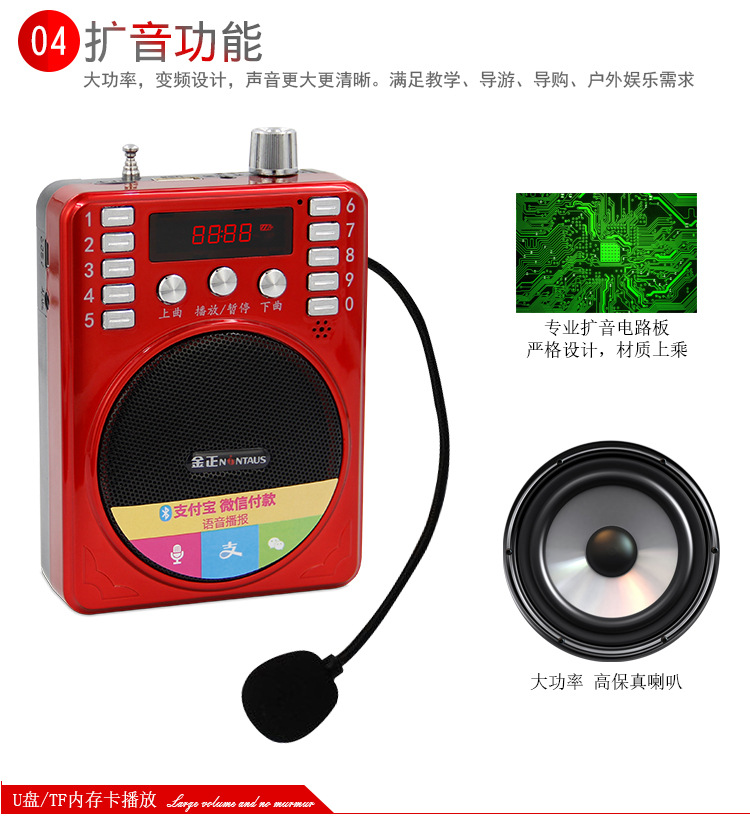Jinzheng K207 Портативная карта Bluetooth-динамик усилитель маленькая пчела открытый гид учителя высокая мощность записи