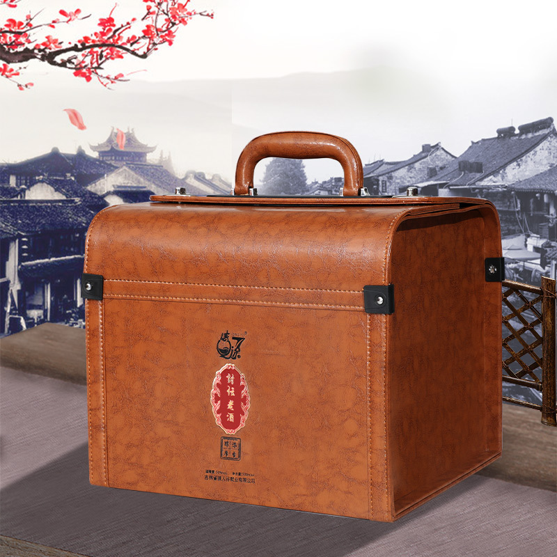 Индивидуальный заказ: высококачественная подарочная коробка для алкоголя, пустая коробка из ПУ, переносная коробка для вина на 4 бутылки, малотиражная упаковка с логотипом, кожаная коробка для подарков.