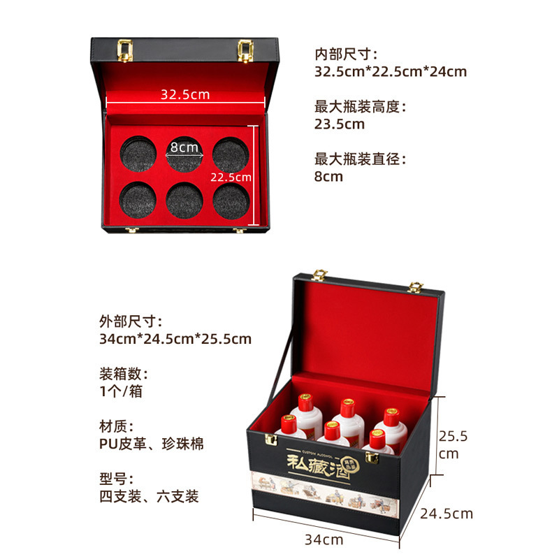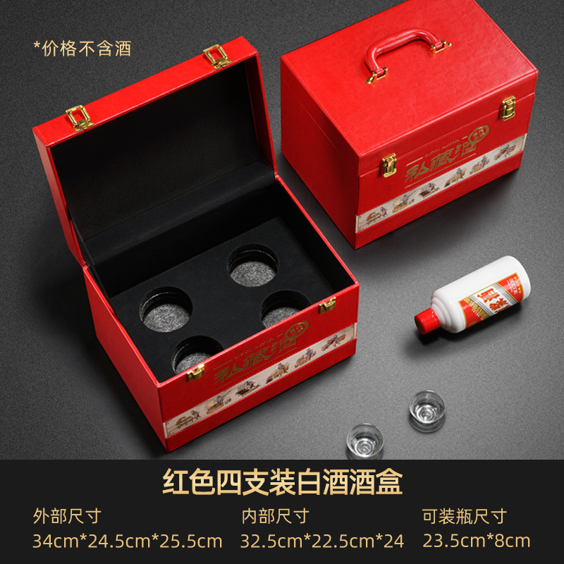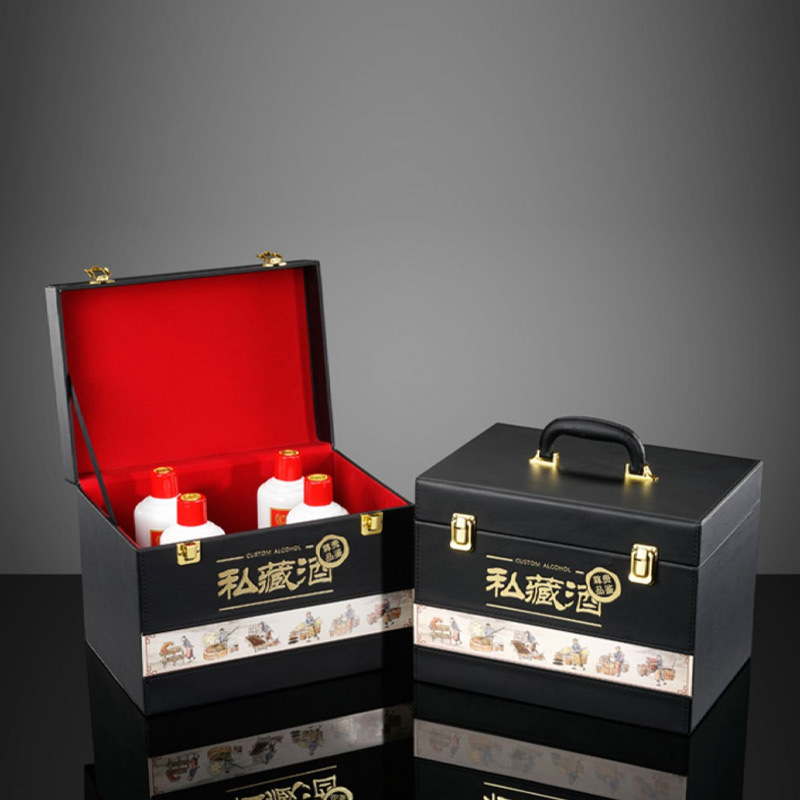 Индивидуальная подарочная коробка для четырех или шести бутылок, высококачественная пустая коробка, чемодан из искусственной кожи, подарочная упаковка из кожи для 2/4/6 бутылок
