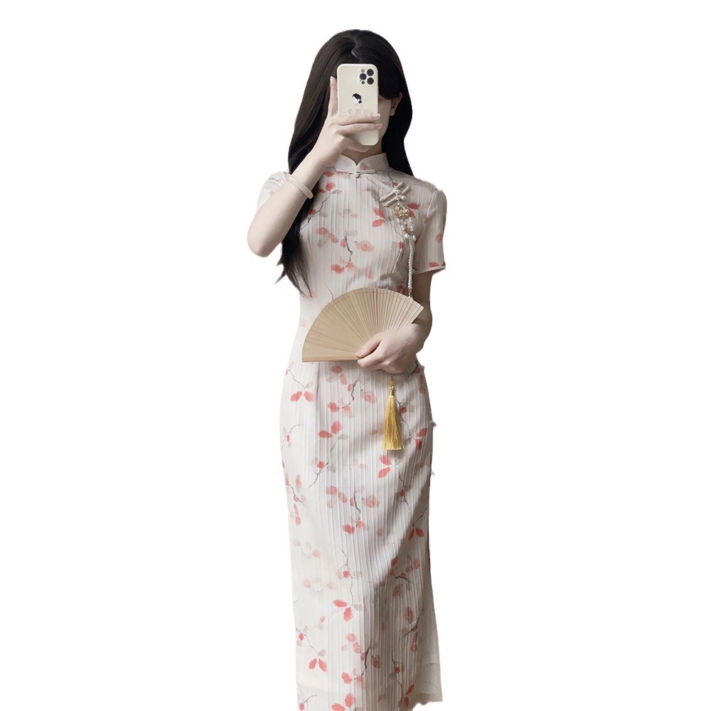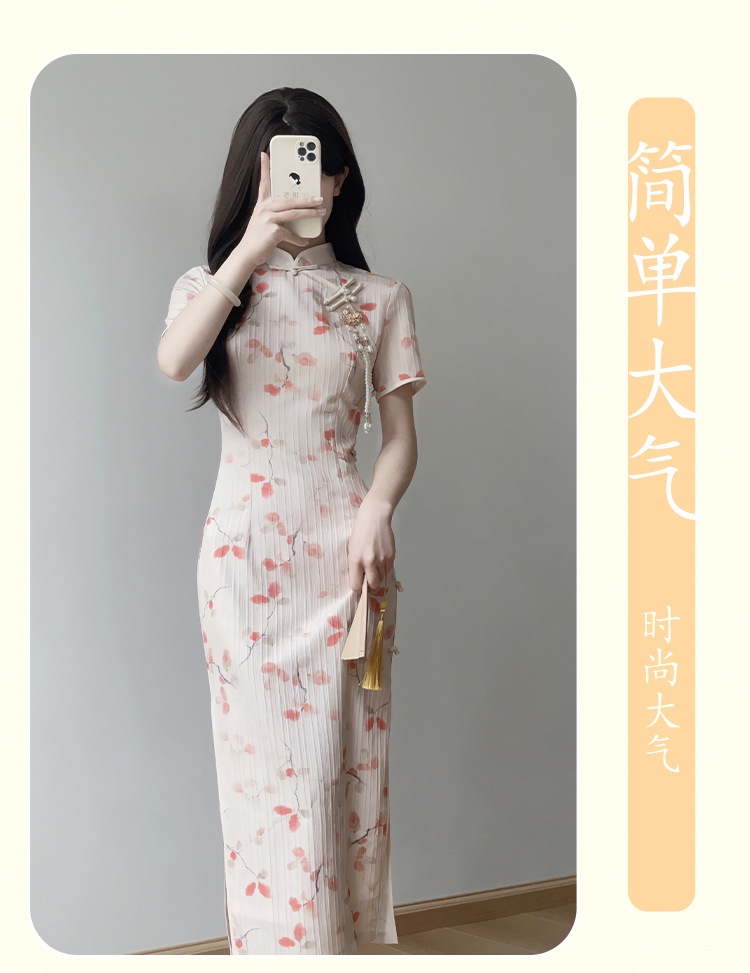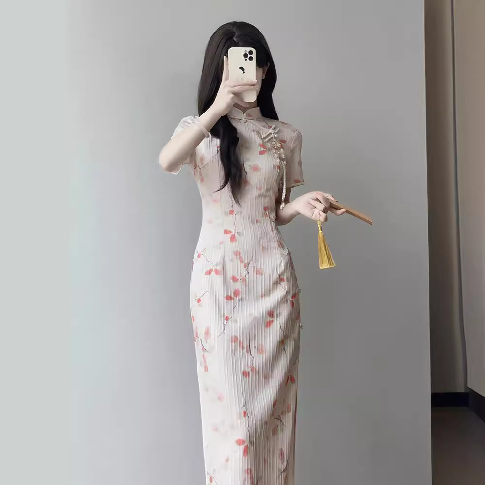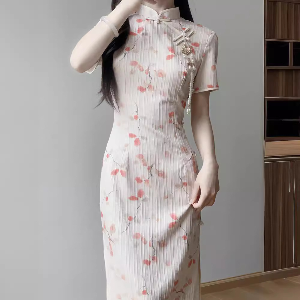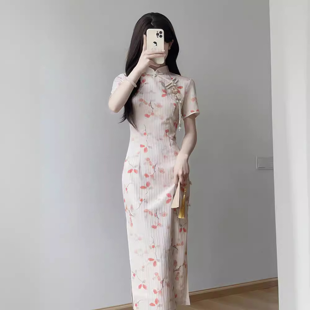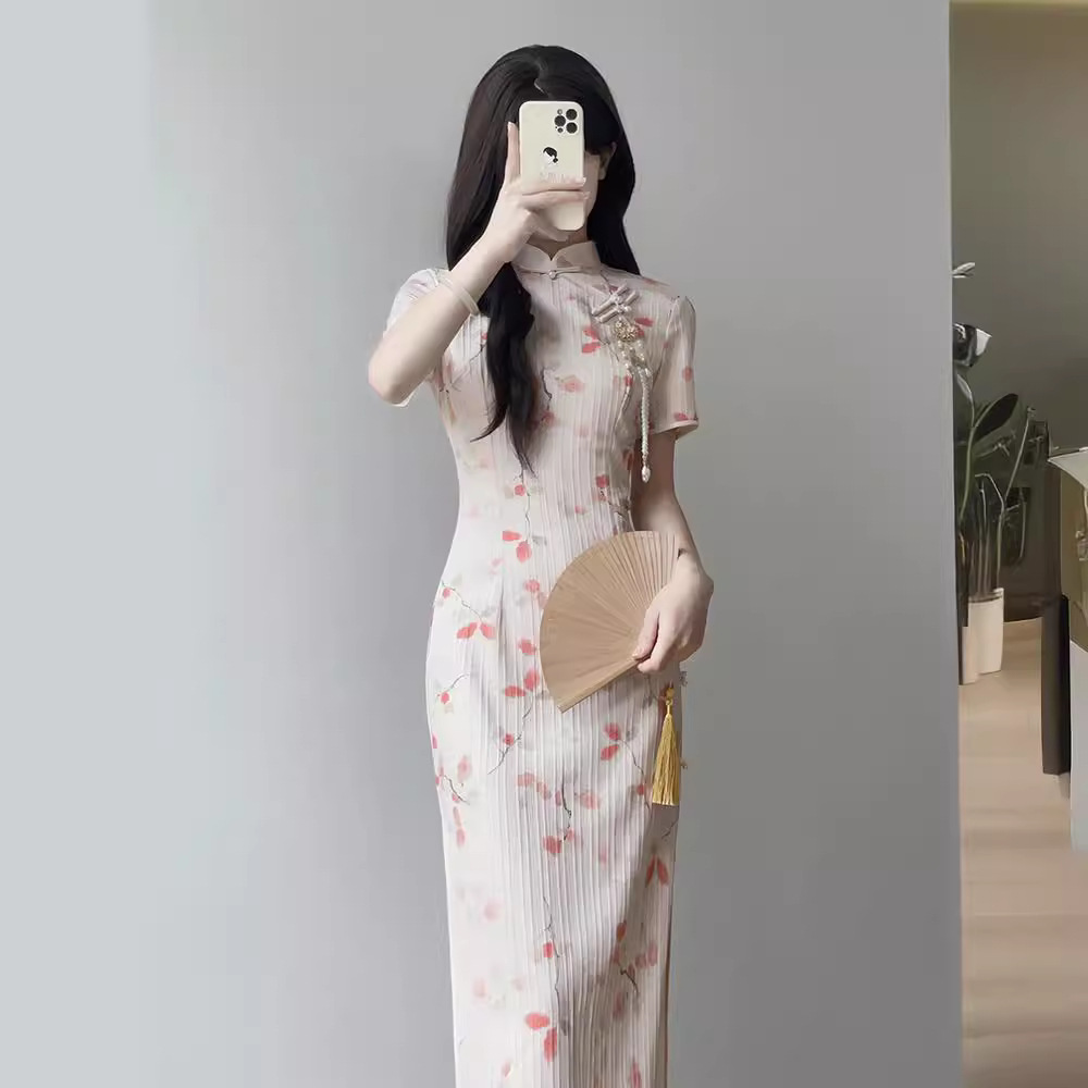Cheongsam новый 2024 молодой женщины с цветочным розовым улучшенным повседневным платьем