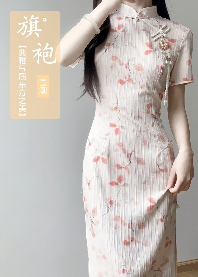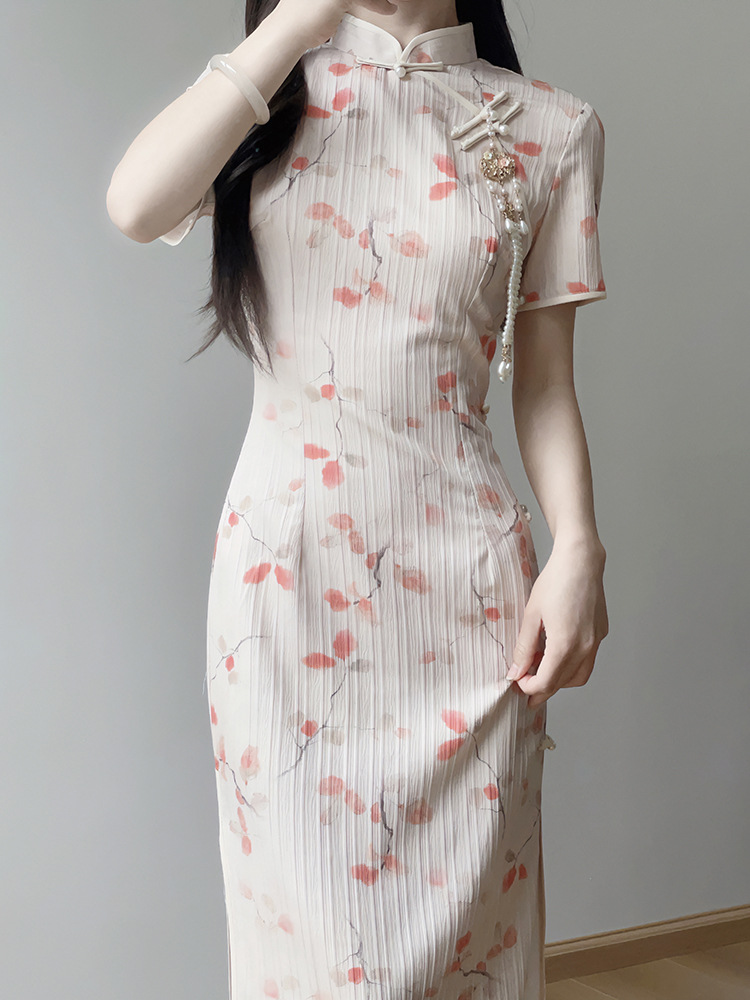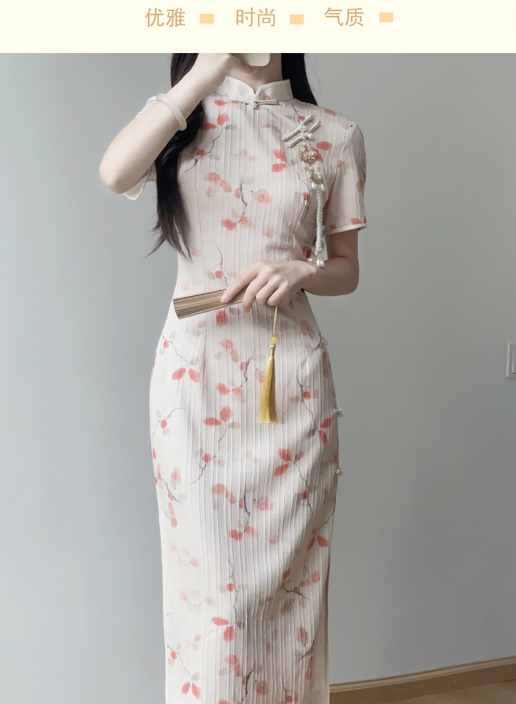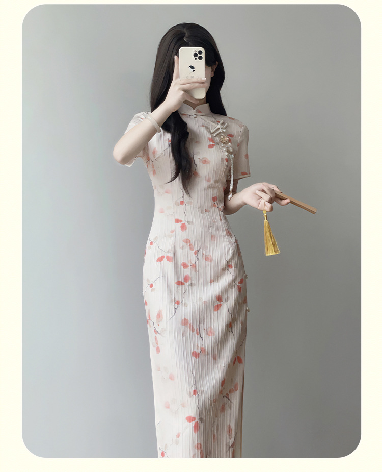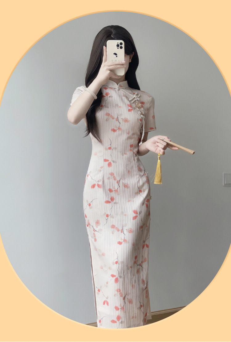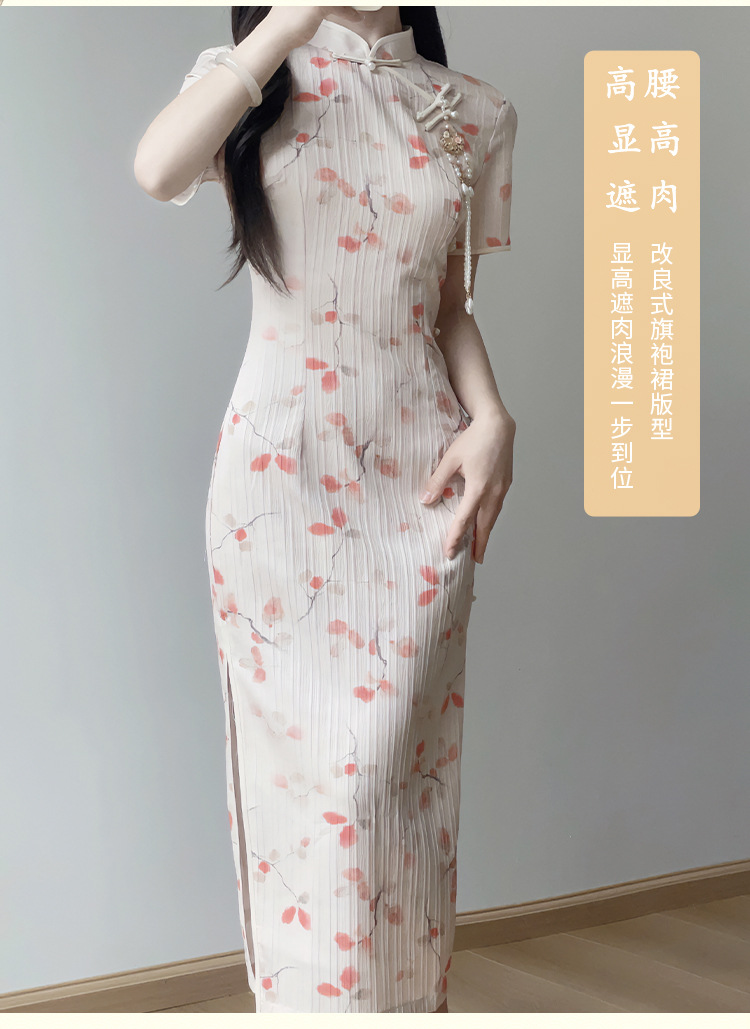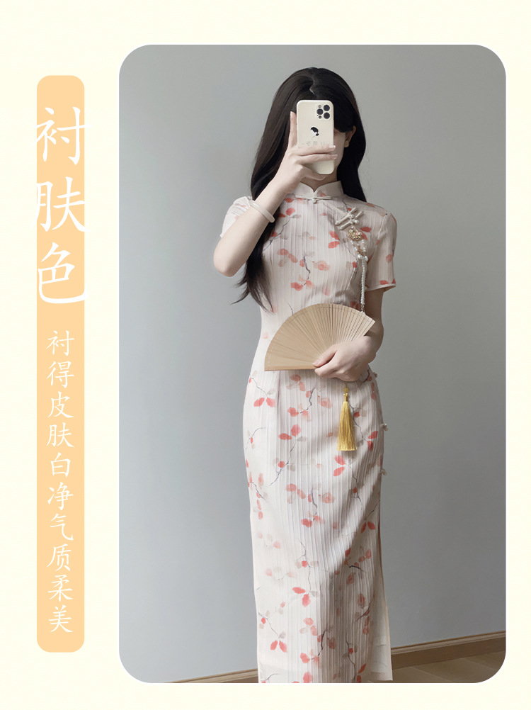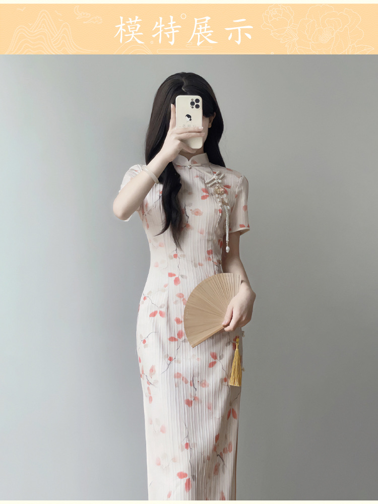 Cheongsam новый 2024 молодой женщины с цветочным розовым улучшенным повседневным платьем