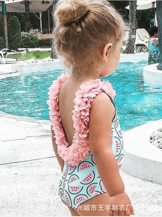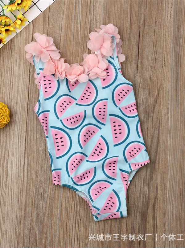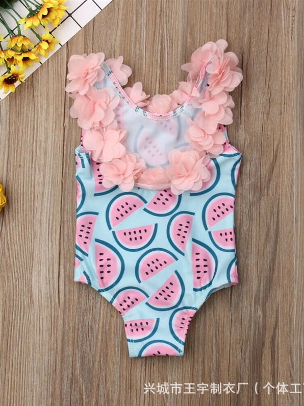 2024 Летний новый стиль соединенные виды спорта женский ребенок ребенок девочка арбуз купальник 3D цветок бикини плавательный купальник