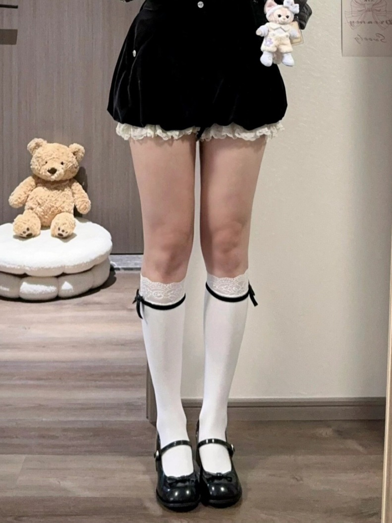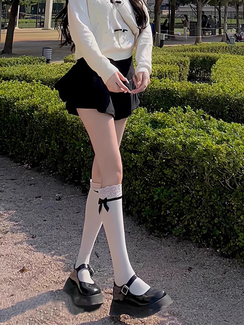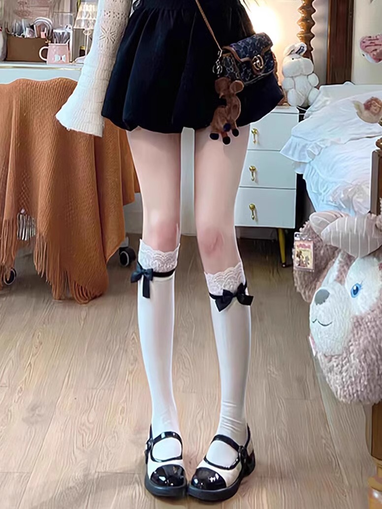Кружевные кружевные чулки для детей длинная трубка японская сладкая девушка тонкая jk лук белые милые носки для ног