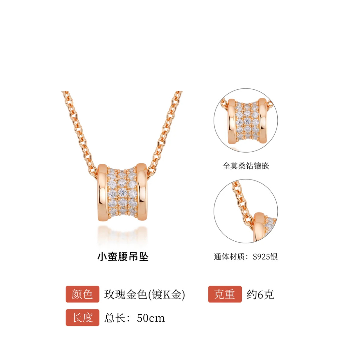 Ожерелье 925 Серебряный Муассанит Маленькая талия Ожерелье Классический дикий легкий экстравагантный и изысканный темпераментный кулон