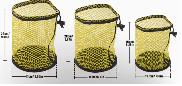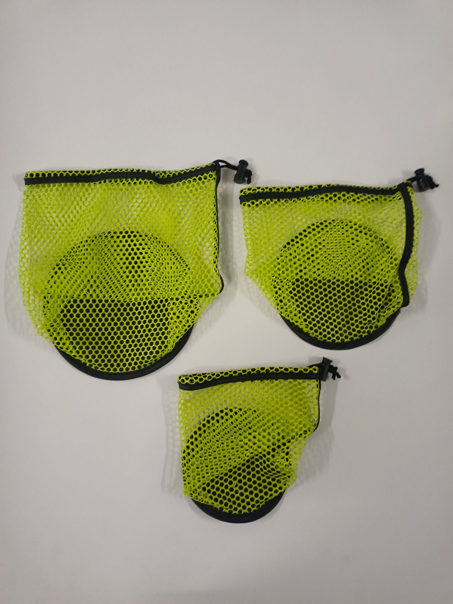 Черная сетчатая сумка на 12 шариков, маленькая; Черная сетчатая сумка среднего размера на 25 шариков; Черная большая сетчатая сумка на 50 шариков; Желтая сетчатая сумка на 12 шариков, маленькая; Желтая сетчатая сумка на 25 шариков среднего размера; Желтый сетчатый мешок на 50 шариков, большой; Зеленая сетчатая сумка на 12 шариков, маленькая; Зеленая сетчатая сумка на 25 шариков среднего размера; Зеленая сетчатая сумка на 50 шариков большого размера; Оранжевая сетчатая сумка на 12 шариков, маленькая; Сумка-сачок оранжевого цвета на 25 шариков, среднего размера; Большой сетчатый мешок оранжевого цвета на 50 шариков; Черная сумка из очень плотной сетки на 15 шаров.; Простая сетчатая сумка на 30 мячей.; Простая сетчатая сумка на 15 мячей.