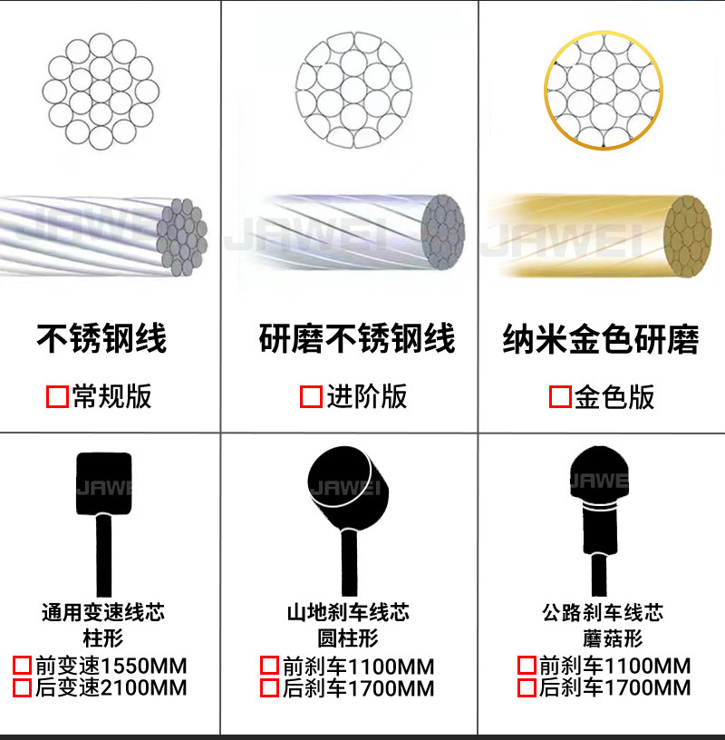 Задняя внутренняя линия из полированной нержавеющей стали 2.1m; Тормозной трос из полированной нержавеющей стали 1.7m; Трос горного тормоза из полированной нержавеющей стали 1.7m