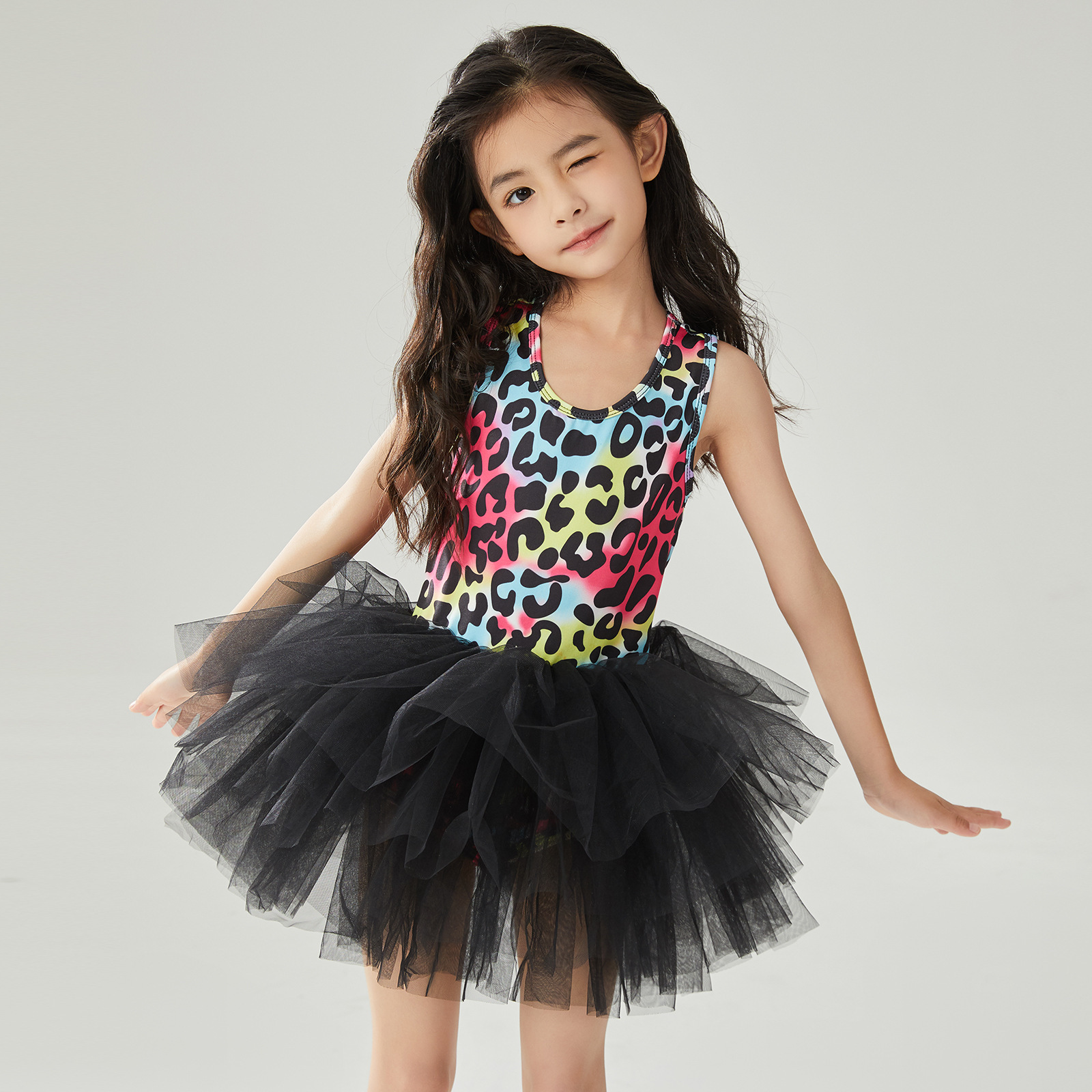Новинка 2025: цельное балетное платье-комбинезон на бретельках для девочек, одежда для танцевальных тренировок, сценический костюм, юбка из тюля, китайский танцевальный костюм