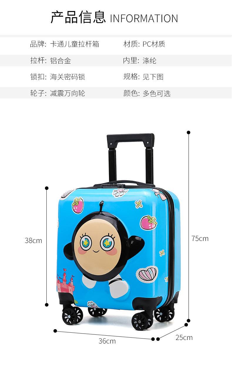 Детский чемодан на колесиках, оптовая продажа 18inch Чемодан с мультяшными животными, универсальное колесо, новый посадочный чемодан, чемодан с паролем