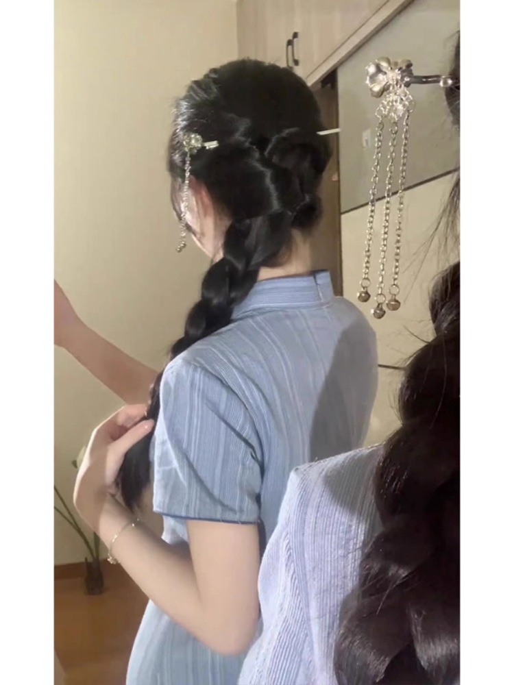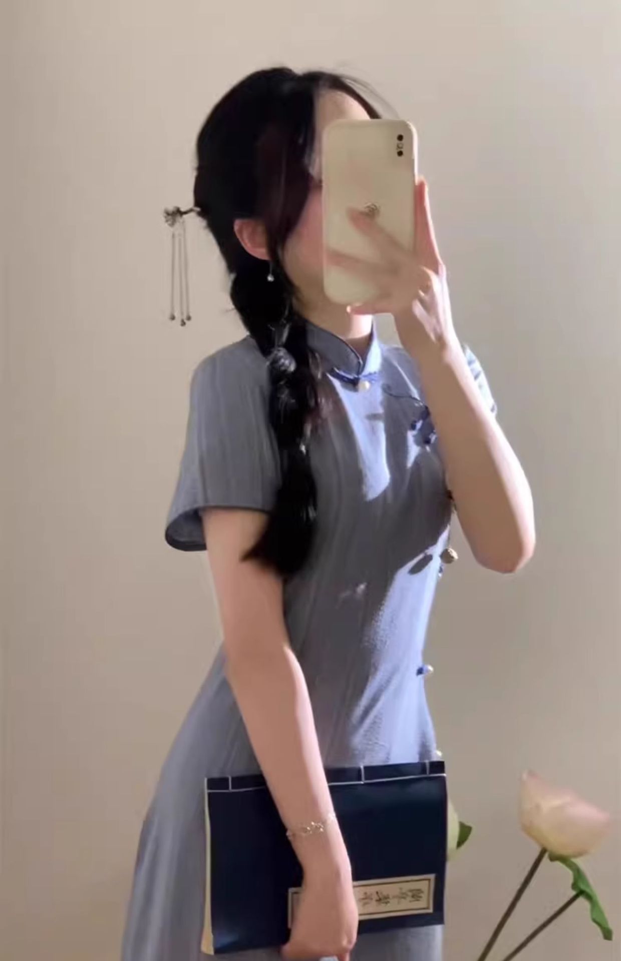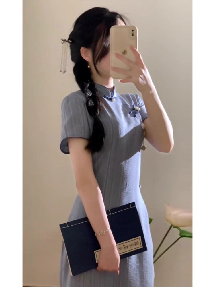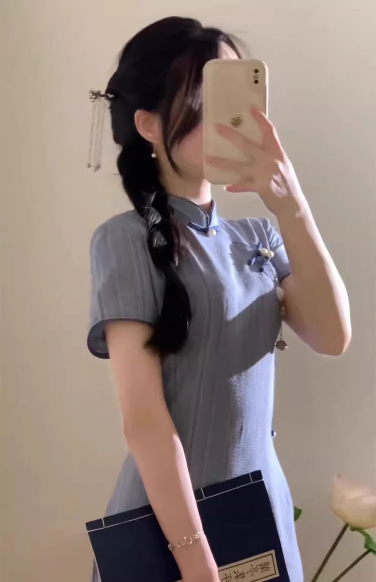 Синяя полосатая новая китайская ретро-китайская республика Cheongsam 2024 новая улучшенная молодая девушка может носить летом