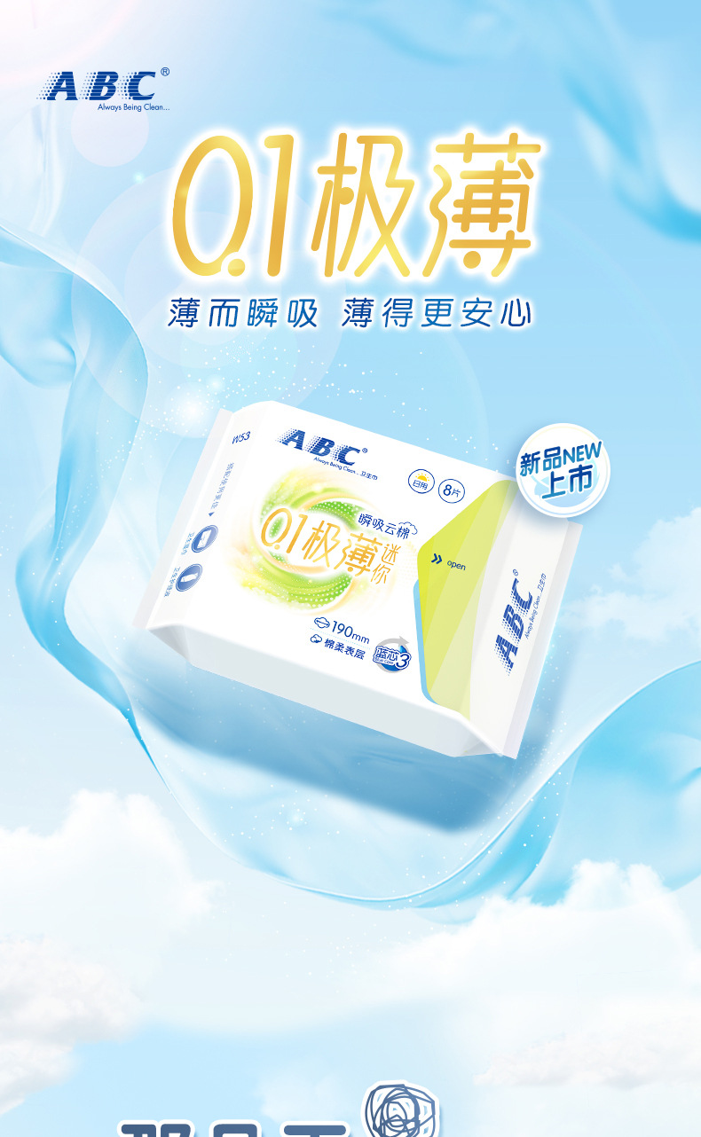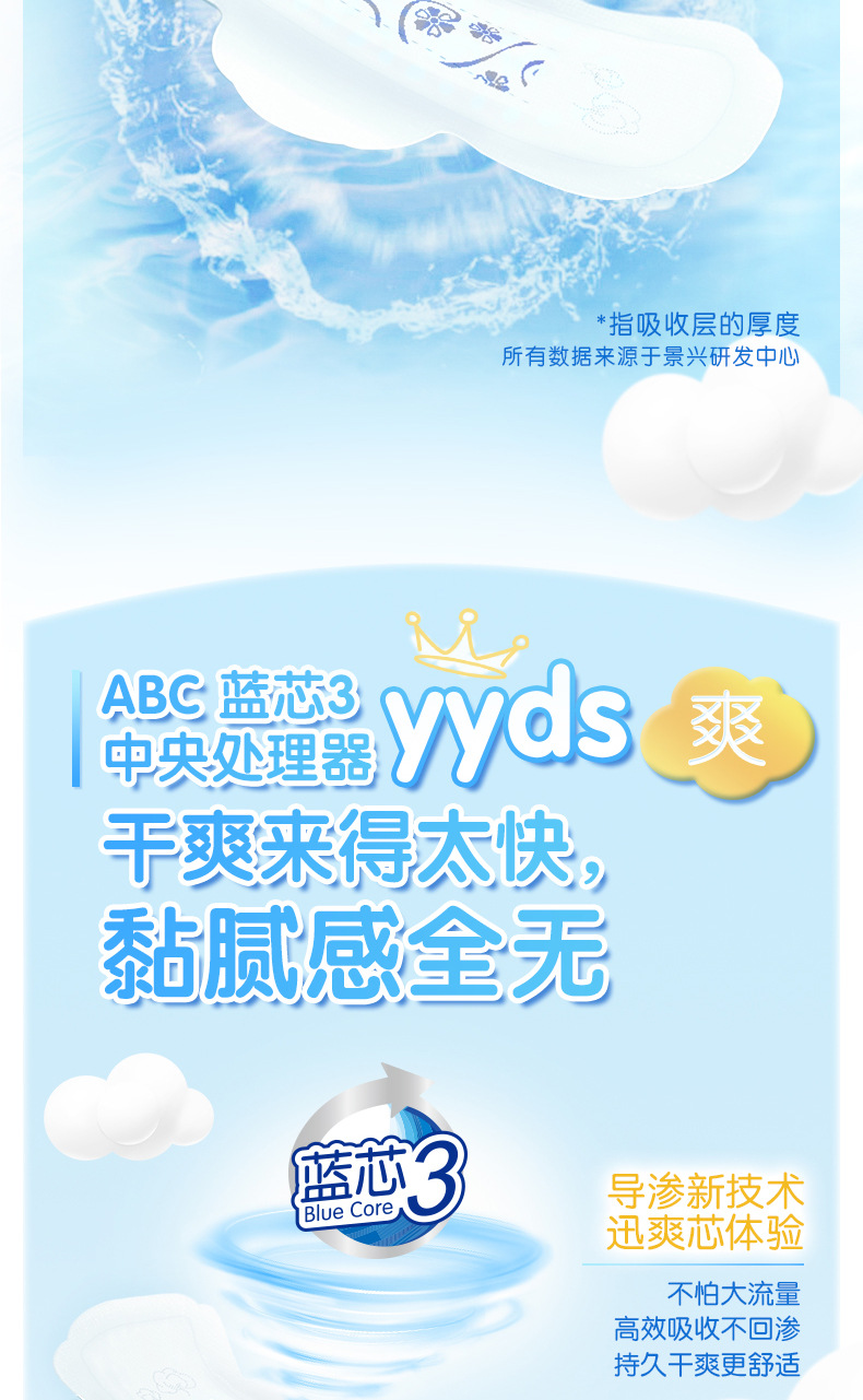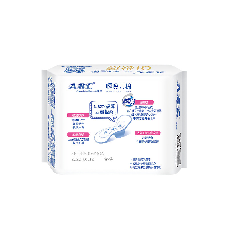 [Подлинный] ABC Мгновенное всасывание облако хлопок мини легкий и тонкий хлопок мягкий поверхностный слой гигиенических салфеток W53