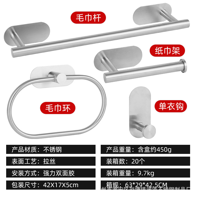 Набор держателей для бумажных полотенец из нержавеющей стали для ванной комнаты, без перфорации, с крючками для одежды и полкой для хранения