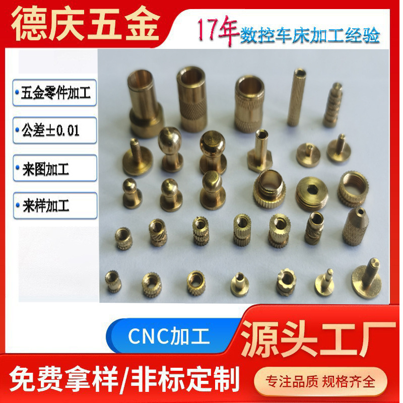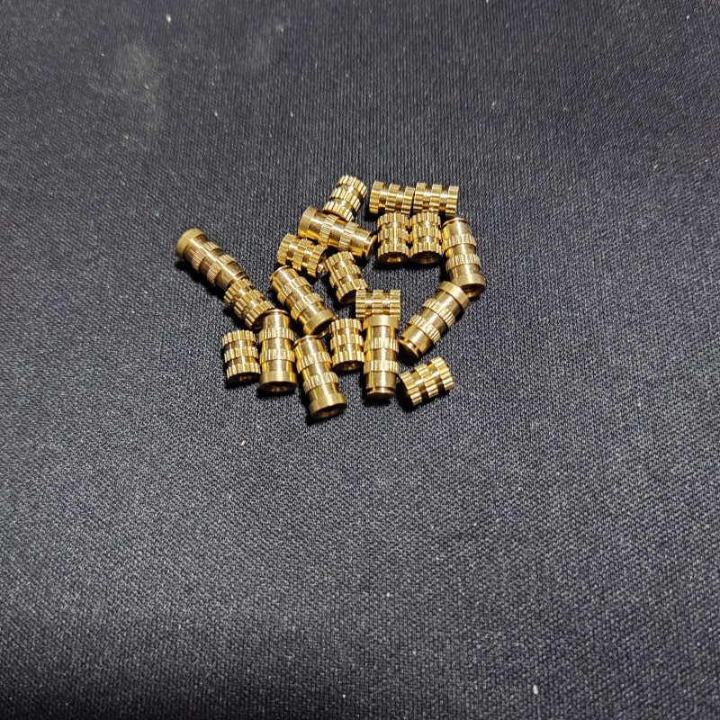 Пластиковая термоплавкая медная гайка с рифленой прямой поверхностью, крестообразным узором и плоским пазом, изготовленная на заказ с высокоточной обработкой на автоматическом токарном станке.