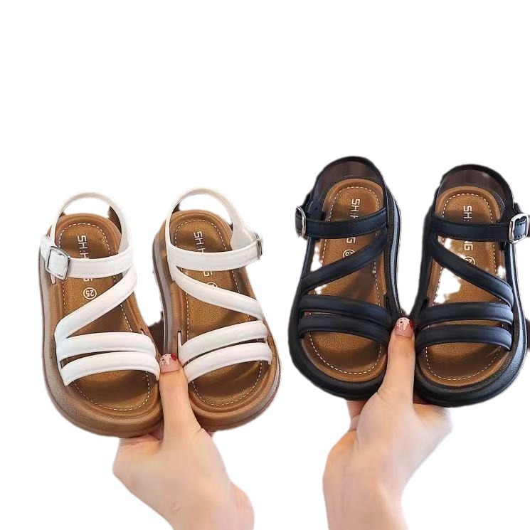 Сандалии для девочек 2024 новая обувь принцессы на мягкой подошве моды дикий стиль летняя маленькая девочка пляж оптом