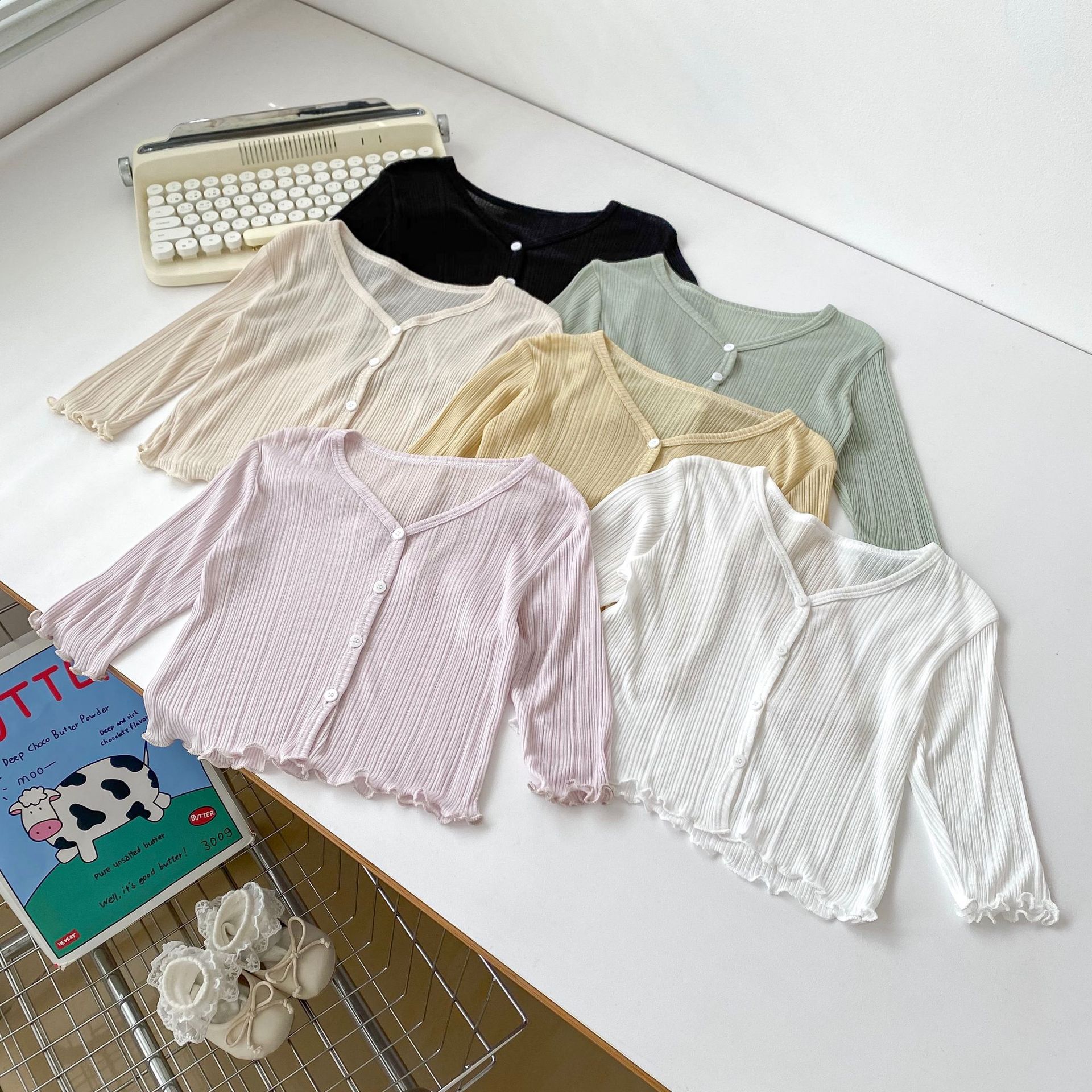 Новинка 2023 года, солнцезащитная одежда для девочек, однотонная легкая дышащая одежда с кондиционером, летняя куртка-кардиган с грибком для маленьких девочек