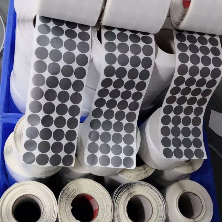 高粘圆形布基标签贴塑基圆标 灰色碳纤维不干胶标签