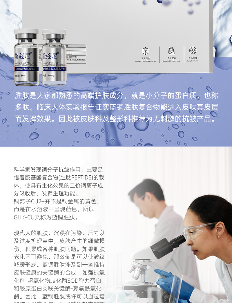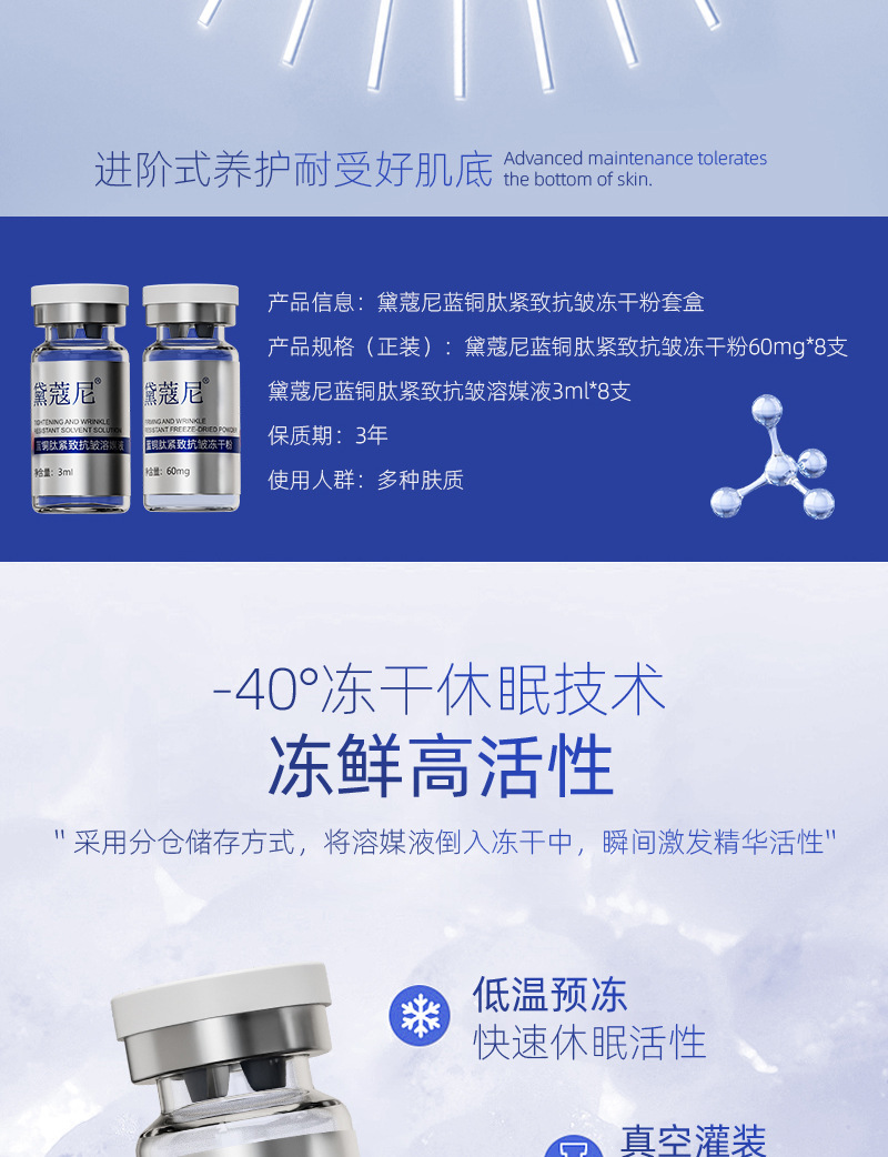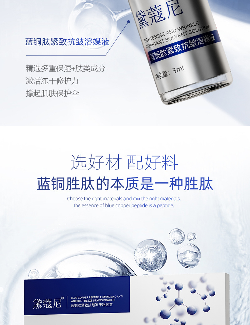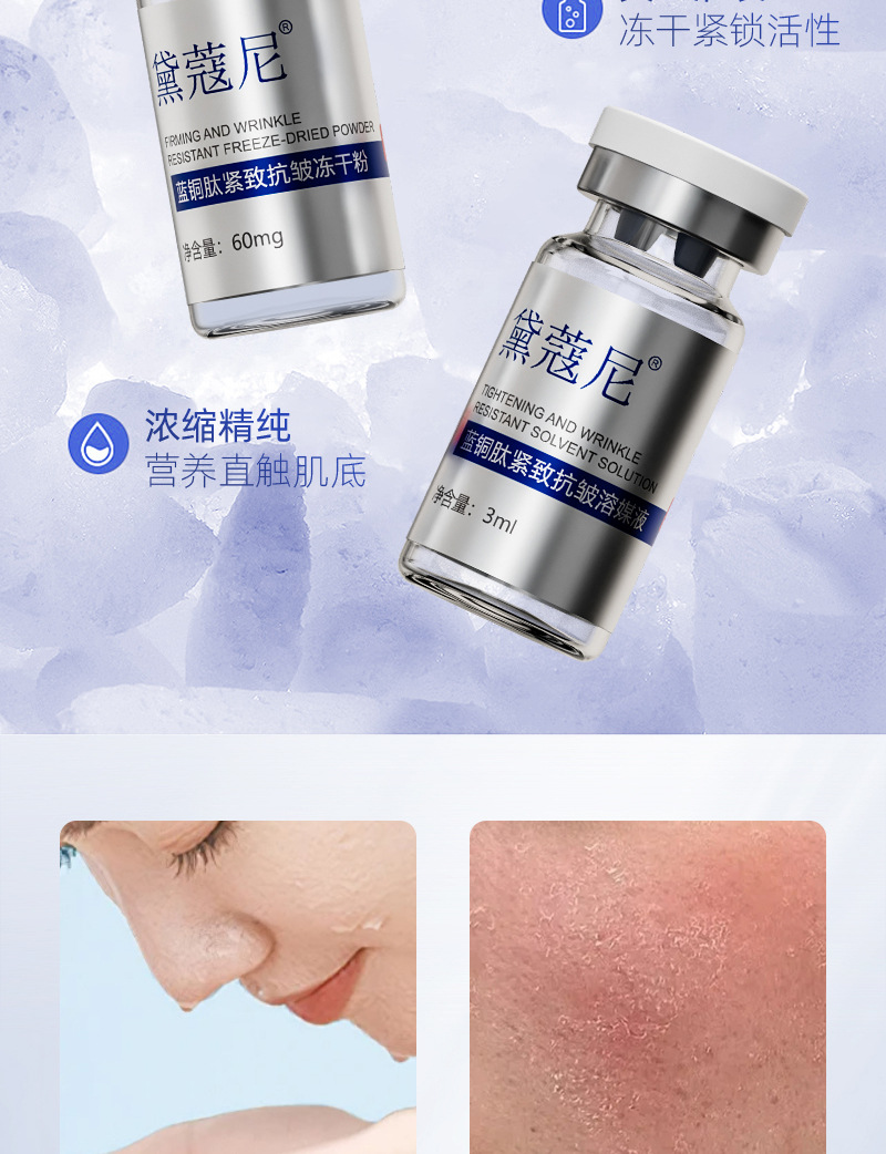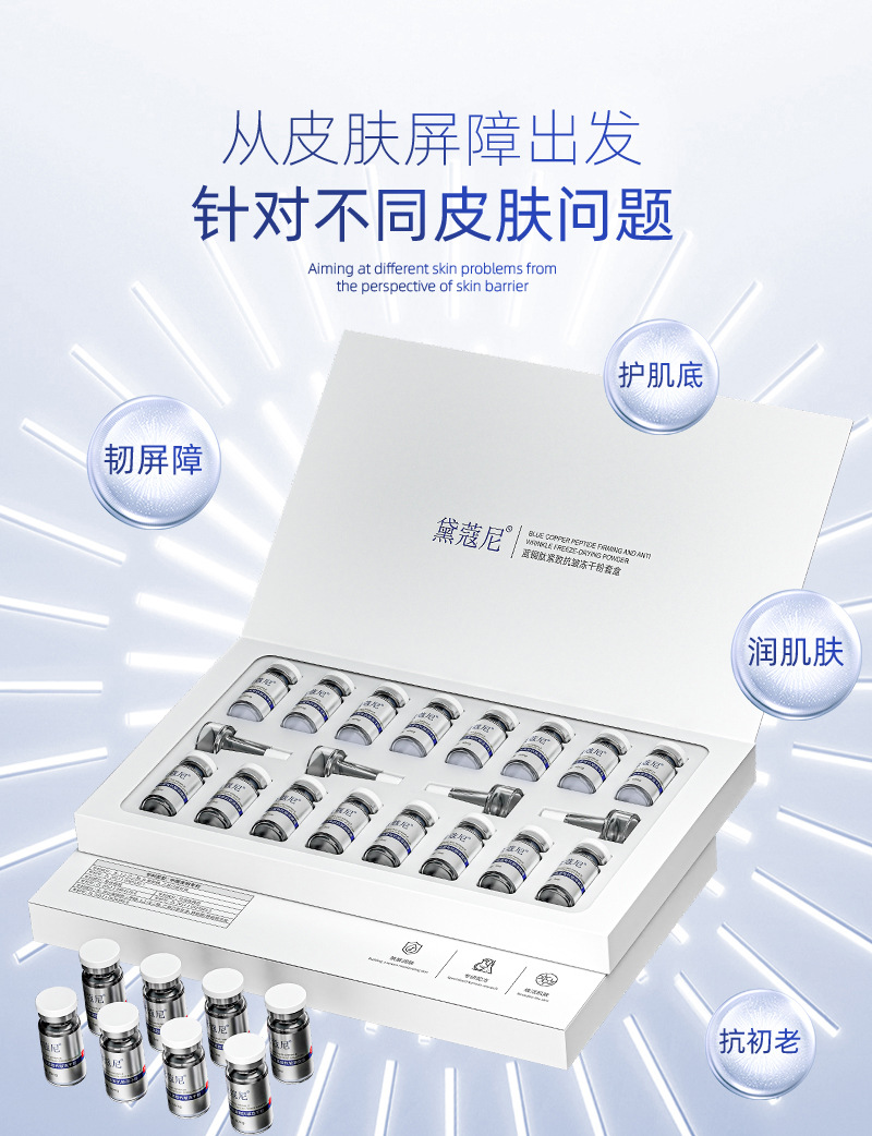 Фирменный лиофилизированный порошок против морщин с синим медным пептидом (3 мл*8 комплектов); Три основных запатентованных набора с успокаивающим действием против морщин с пептидом голубой меди без подвесной сетки (5 мл * 10 комплектов)