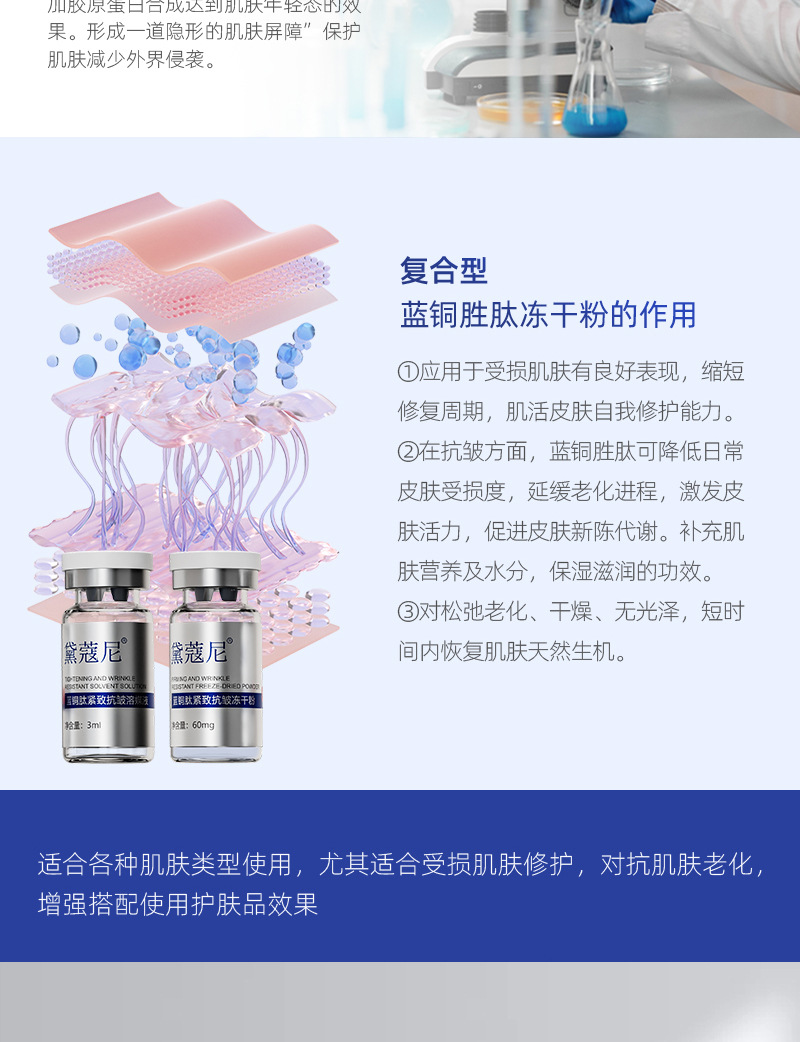 80 000 единиц порошкового комплекта из лиофилизированного пептида голубой меди, высокоактивный лиофилизированный порошок из пептида голубой меди для подтягивания и восстановления кожи, оптом.