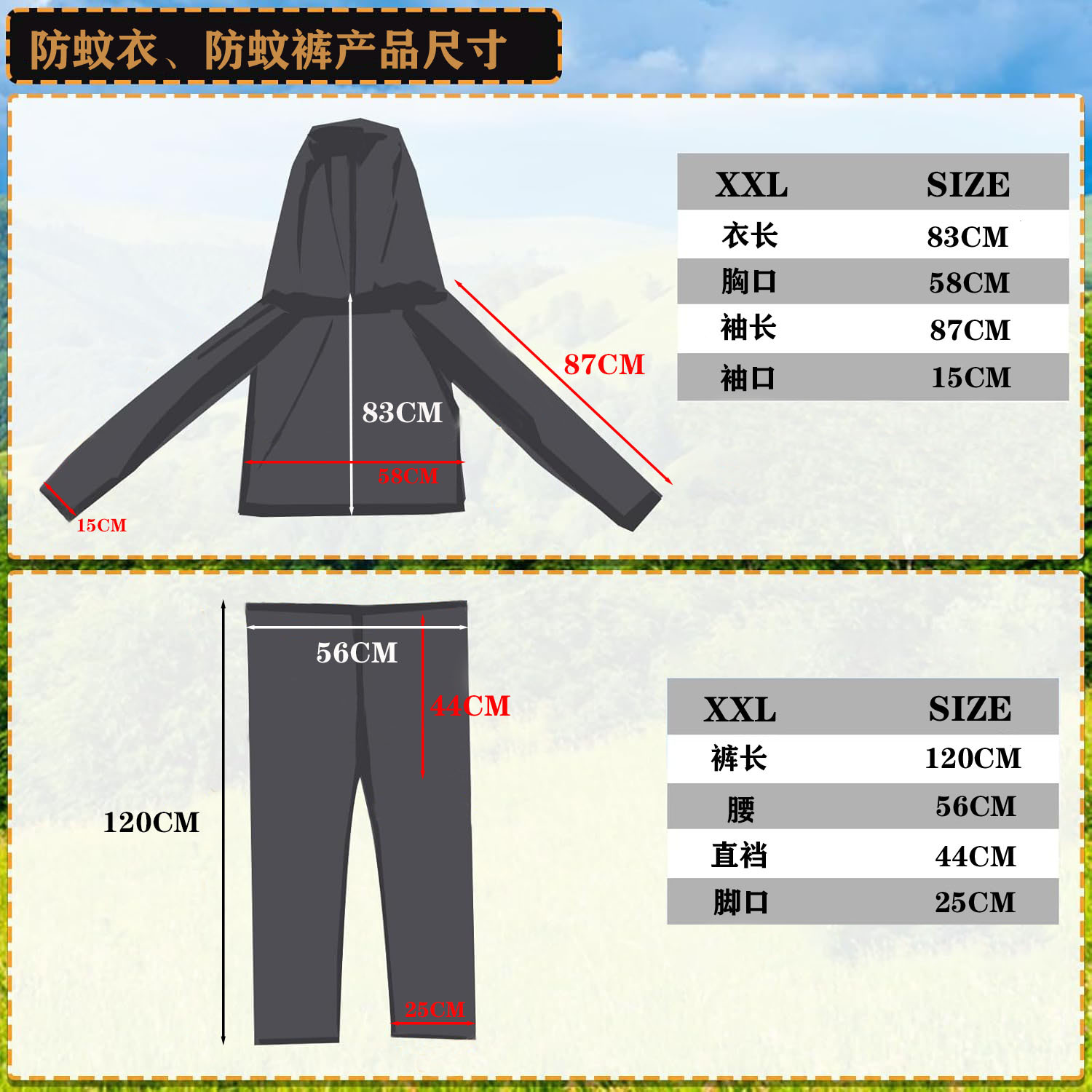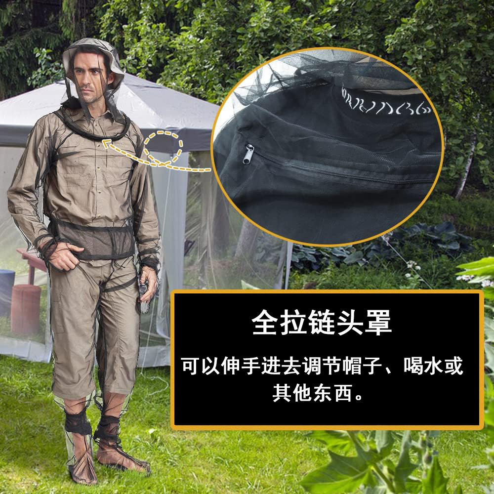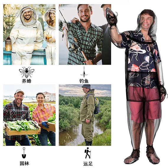 3、四件套包含防蚊外套带头套,防蚊手套,防蚊裤子及防蚊脚套;