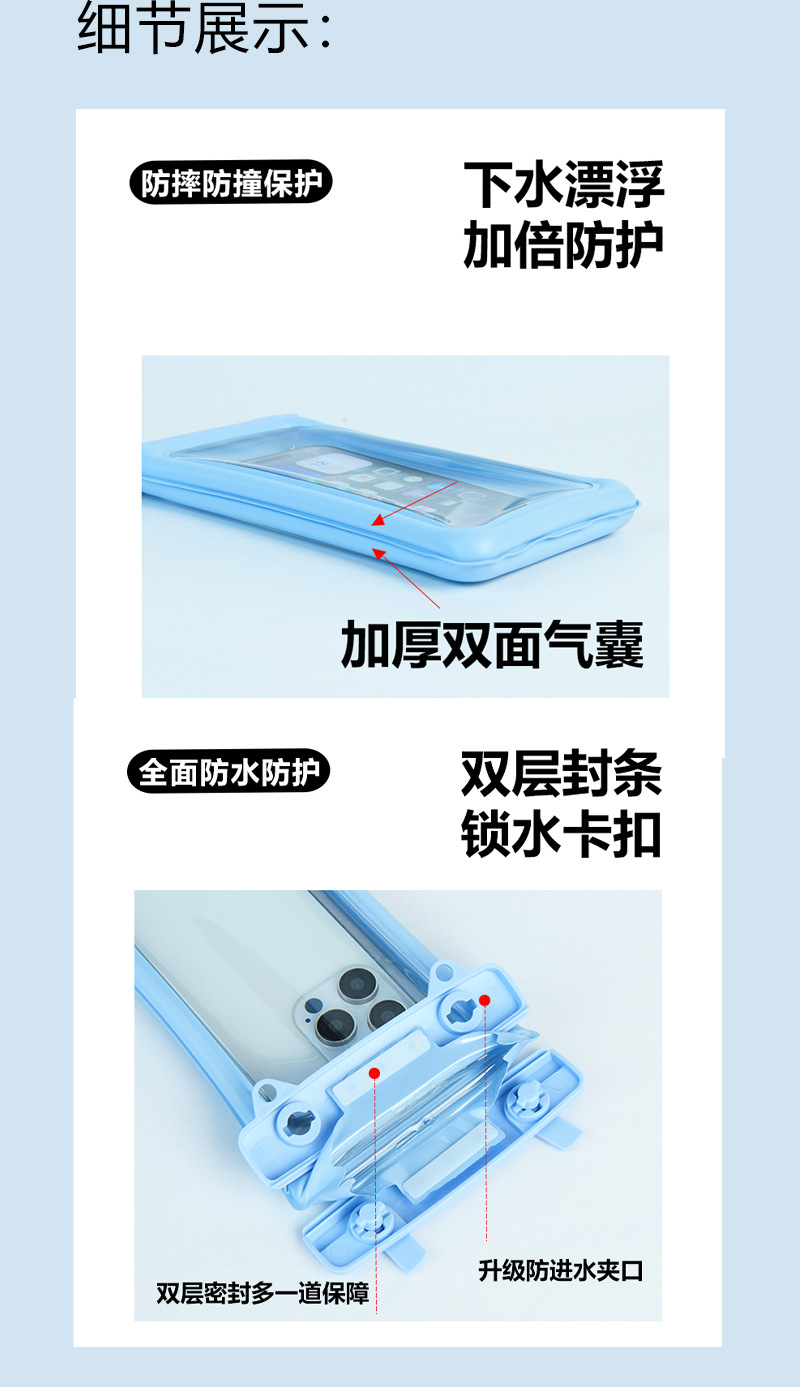 Двойная подушка безопасности для мобильного телефона, водонепроницаемый сенсорный экран, камера, телефон, водонепроницаемый чехол для серфинга, рафтинга, дайвинга, герметичная защита сумки для мобильного телефона