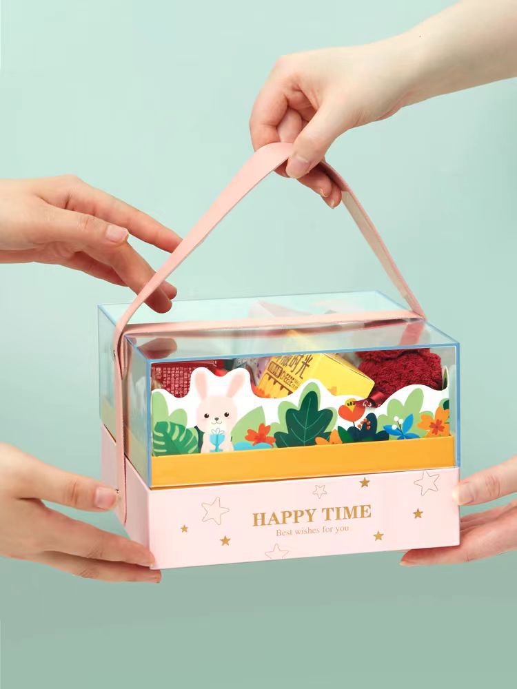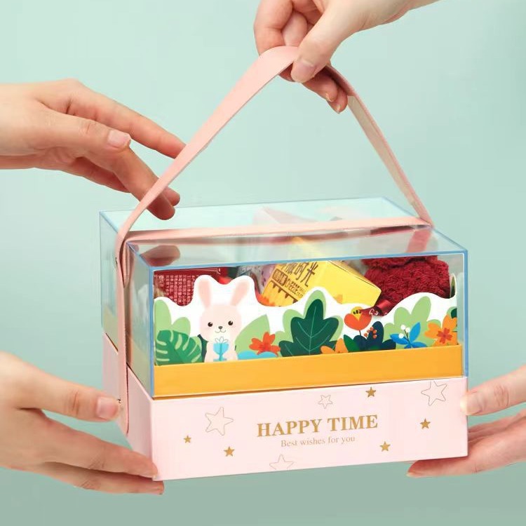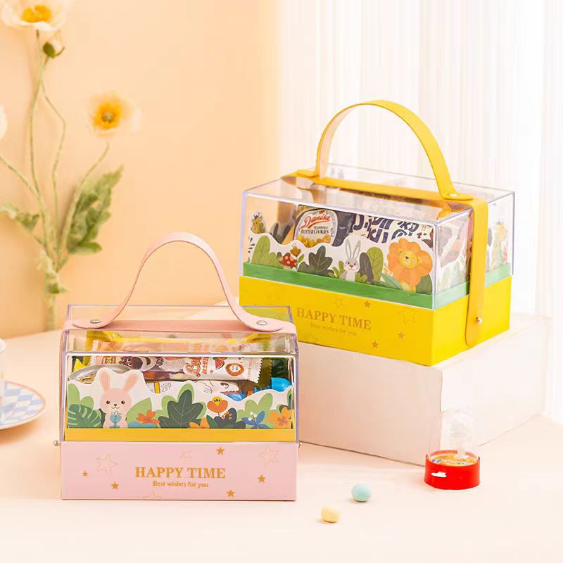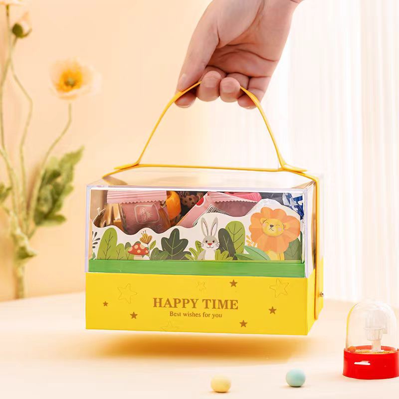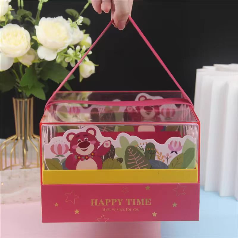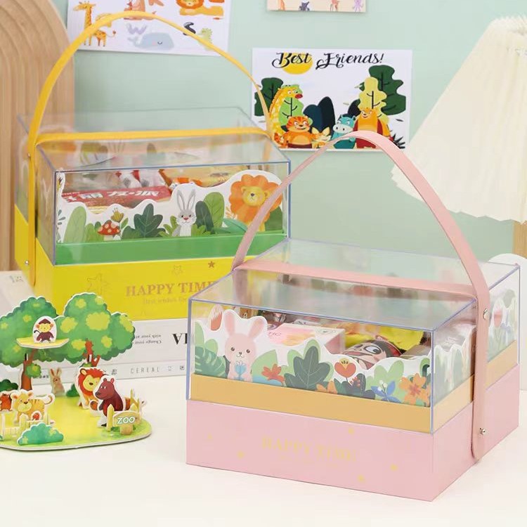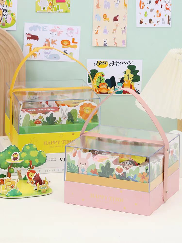 Акриловая портативная подарочная коробка для детского дня, подарочная коробка для детского дня рождения в виде мультяшного персонажа, подарочная коробка с золотым тиснением.