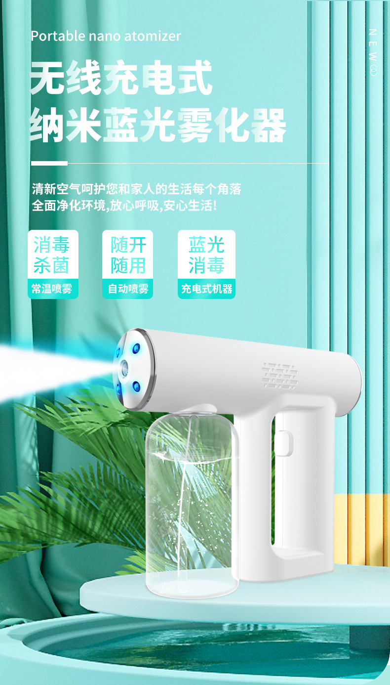 Готовый к использованию дезинфицирующий распылитель от производителя, синий свет, нано-дезинфекционный пистолет, для домашней дезинфекции и стерилизации, электронный распылитель-атомайзер