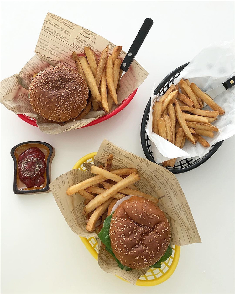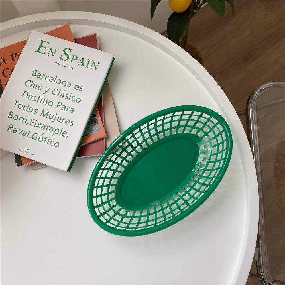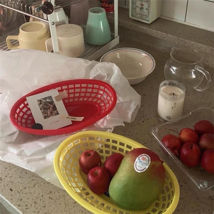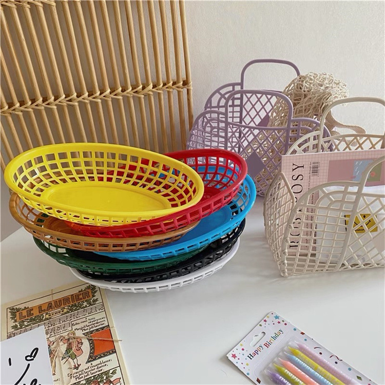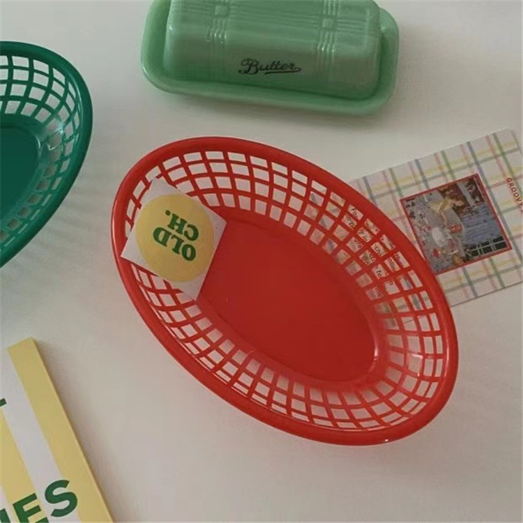 Корейская красочная пластиковая настольная корзина для хранения в том же стиле, корзина для овощей и фруктов, картофель фри, закусочная тарелка для хот-догов, корзина для бургеров