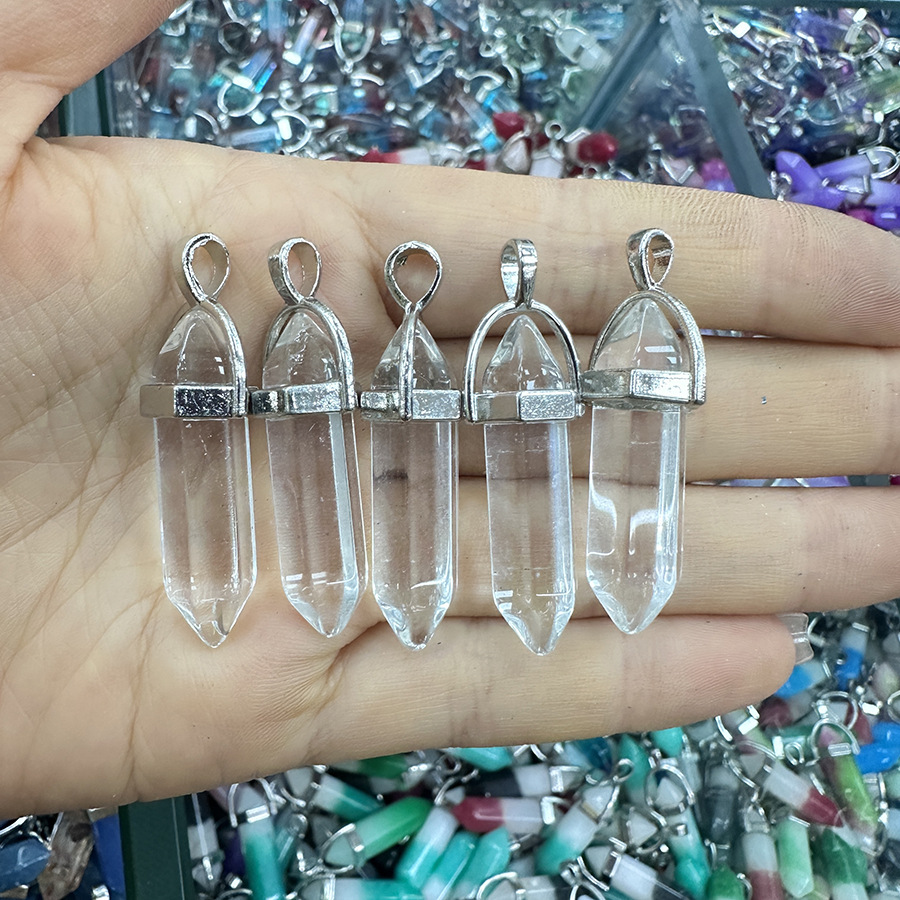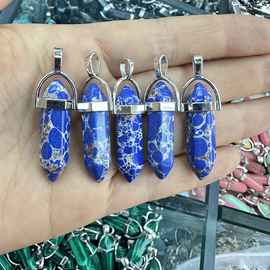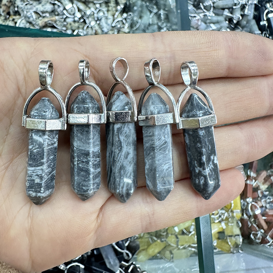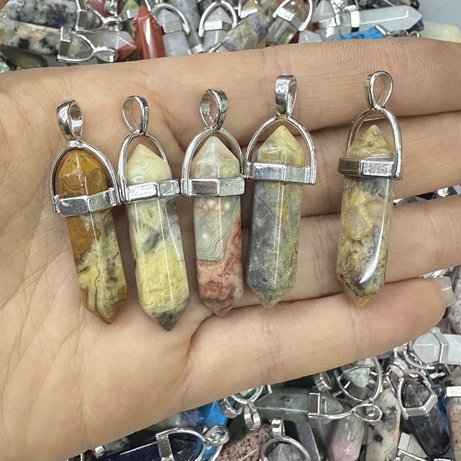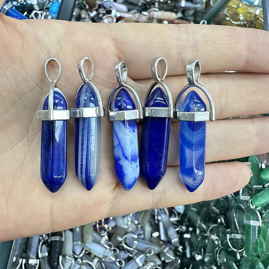 Оптовая продажа натуральный камень шестигранная колонна шестигранная пирамида подвеска полудрагоценные ювелирные изделия DIY ювелирные изделия ожерелье серьги подвеска