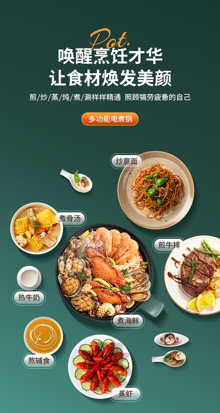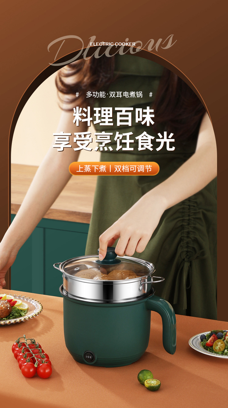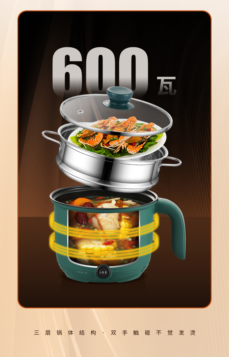 Трансграничная многофункциональная электрическая кастрюля Общежитие для домашних путешествий Студент переносной антипригарный вкладыш