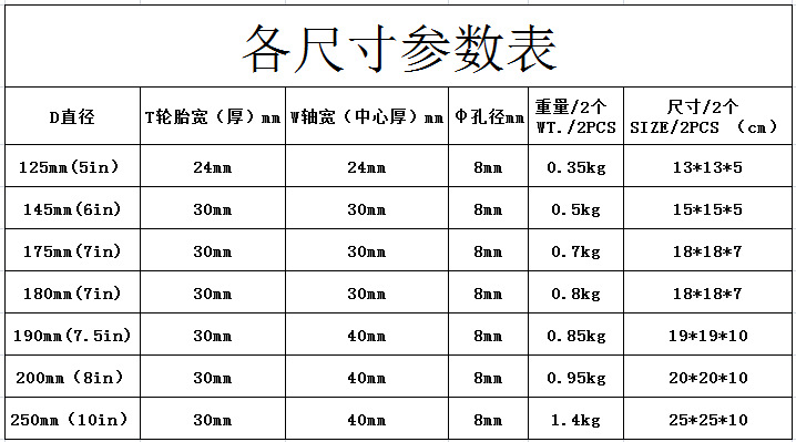 尺寸:(直径*宽度(轴距)125*24 145*30 175*30