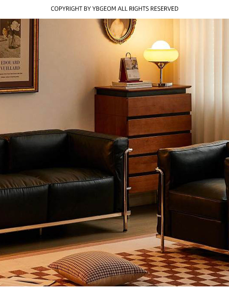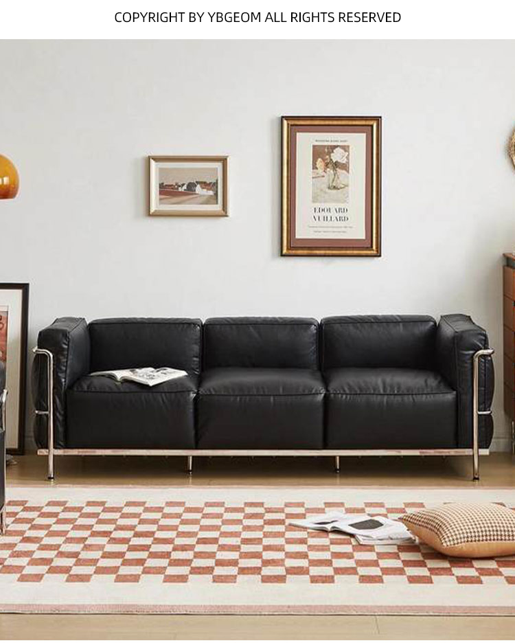 Nordic кожаный диван гостиная минималистская Bauhaus черное кожаные художественные одиночные двойные легкие и роскошные комбинированные средневековый диван