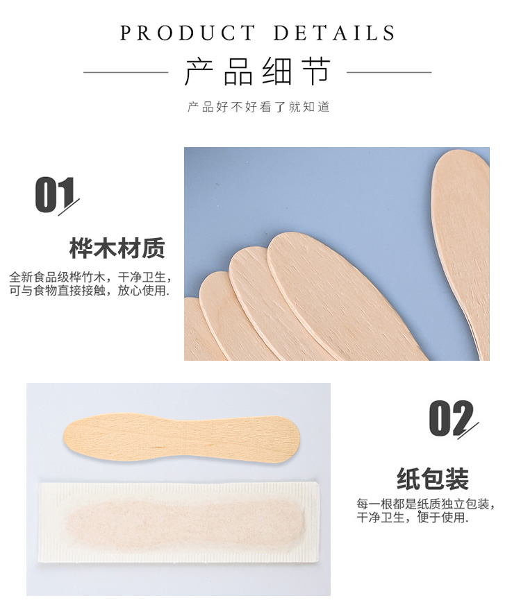 Мороженое Деревянная ложка Одноразовая пробная маленькая ложка мороженого сорбет 75/94 Независимая деревянная ложка мороженого