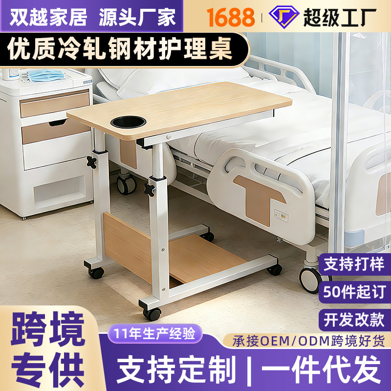Прикроватный столик для больниц, передвижной подъемный столик для ухода, складной столик для кормления и ухода за пожилыми людьми в больнице.
