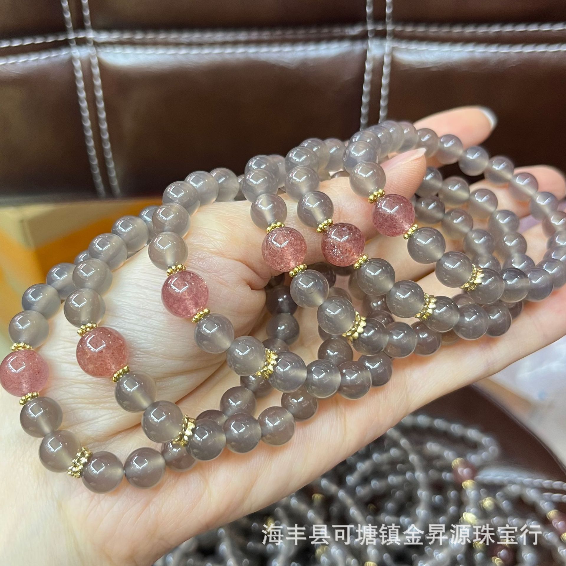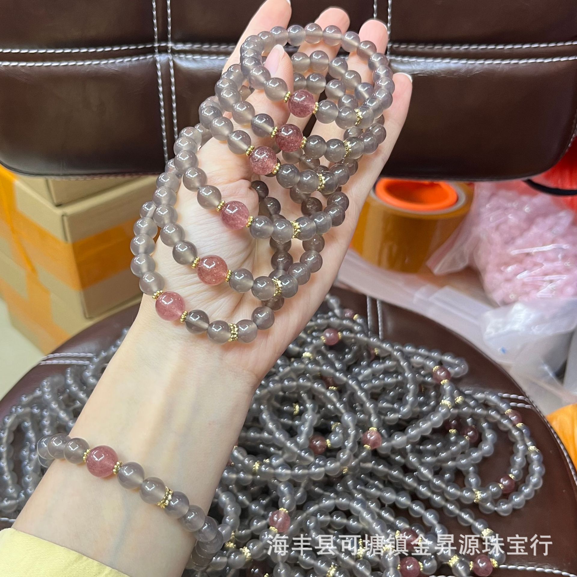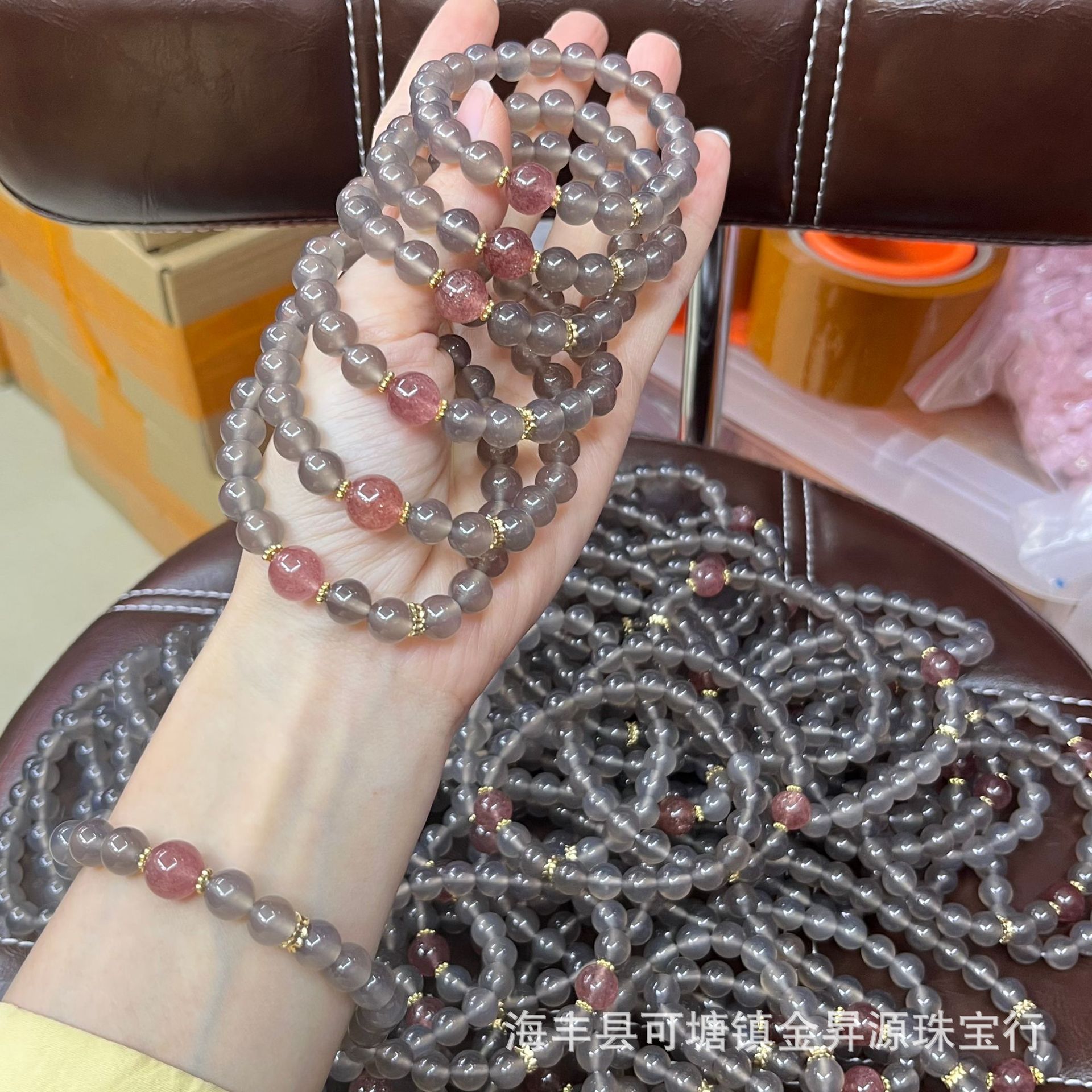 天然烟紫灰玛瑙手链搭配草莓晶女生手串珠宝水晶饰品批发直播福利 批发量越大价格越低,可供直播间长期合作,欢迎来电私聊