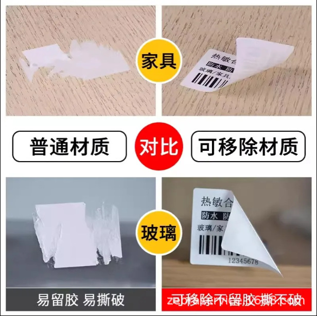 Перемещаемая термочувствительная синтетическая этикеточная бумага для печати Съемная разорванная водонепроницаемая легко разрывная мебель стикер из стеклянной пластины