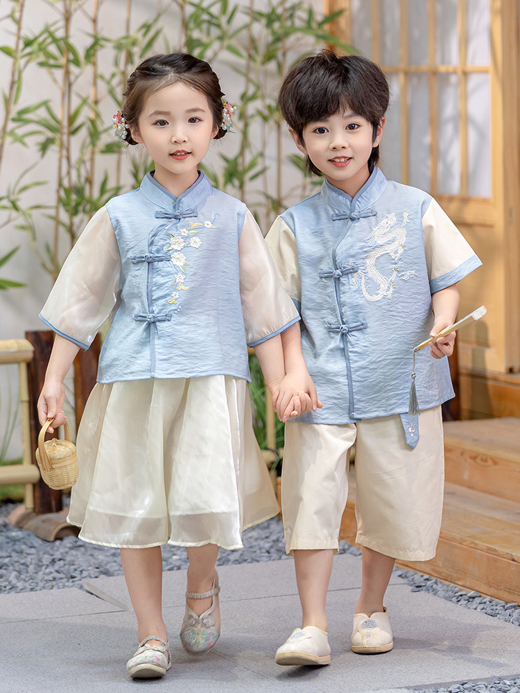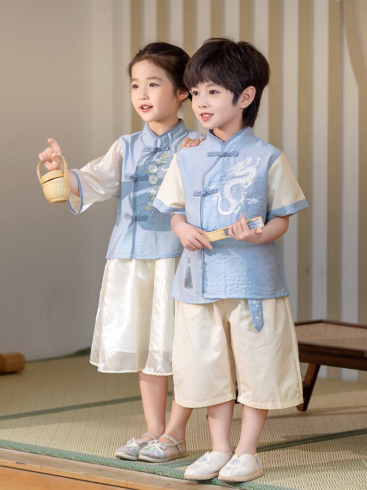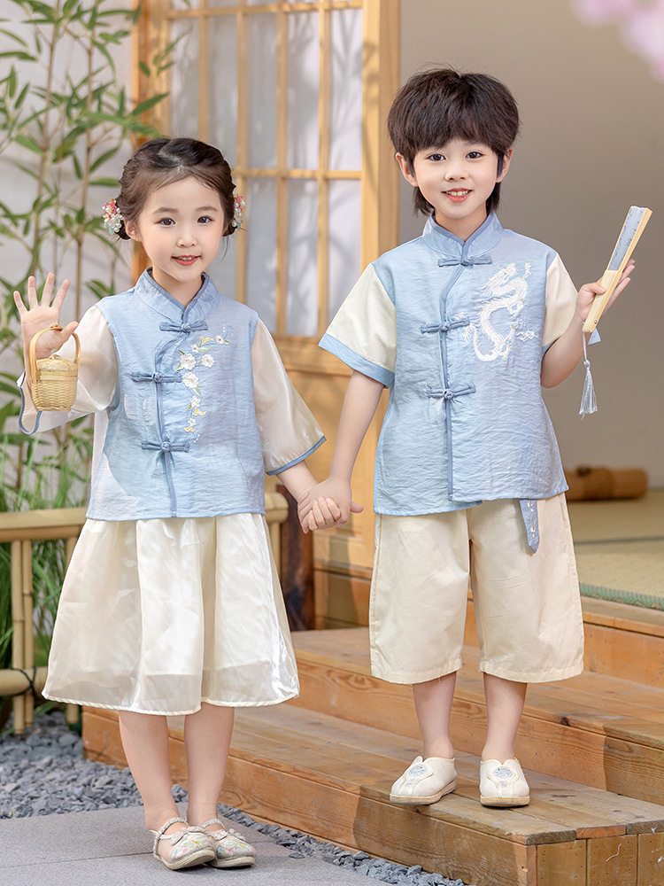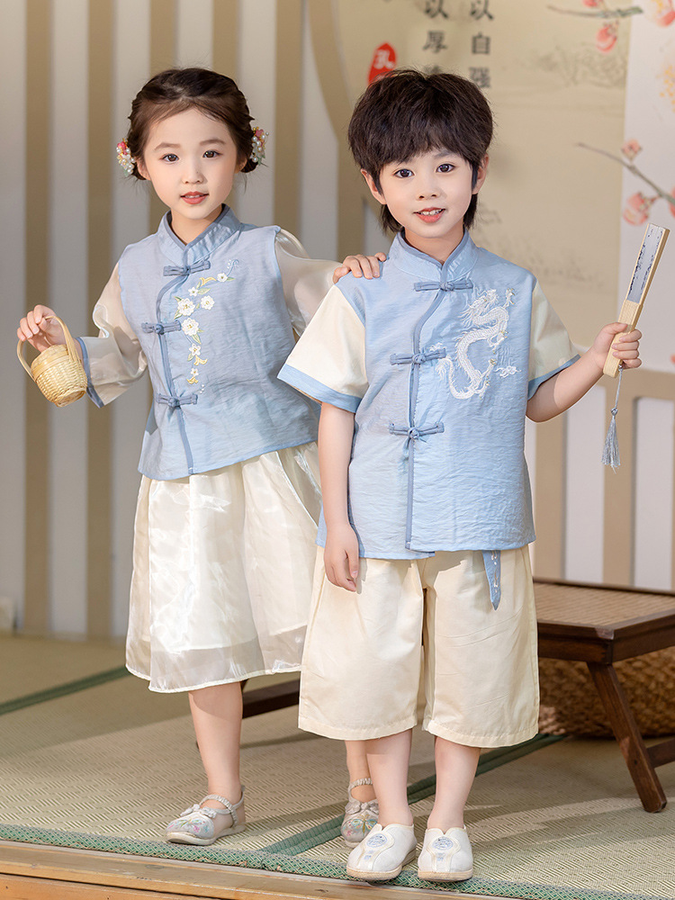 Дети мужского и женского пола Hanfu дети летняя новая форма с короткими рукавами