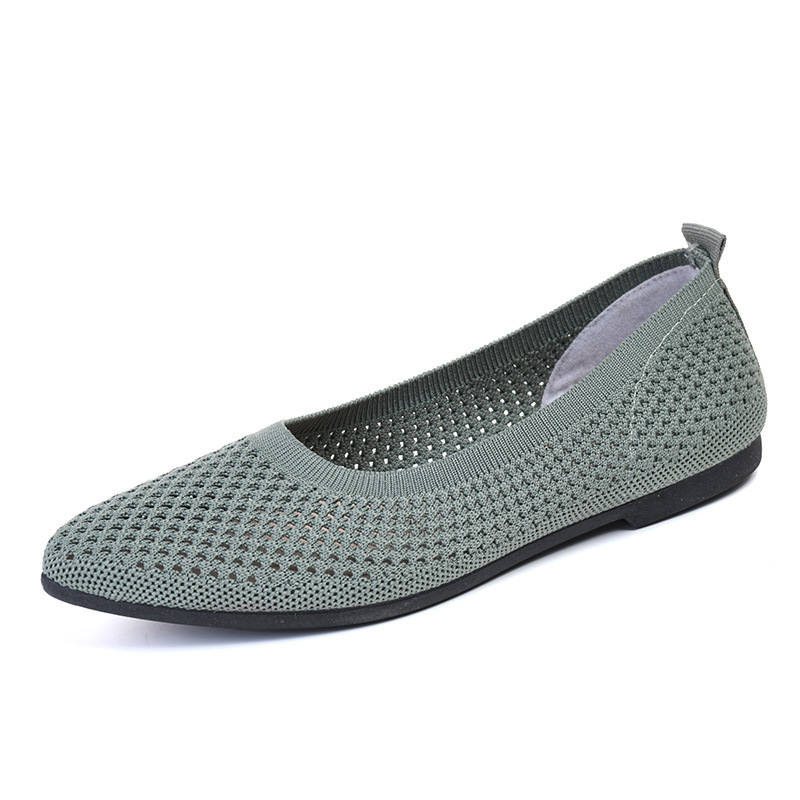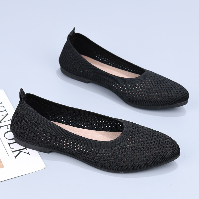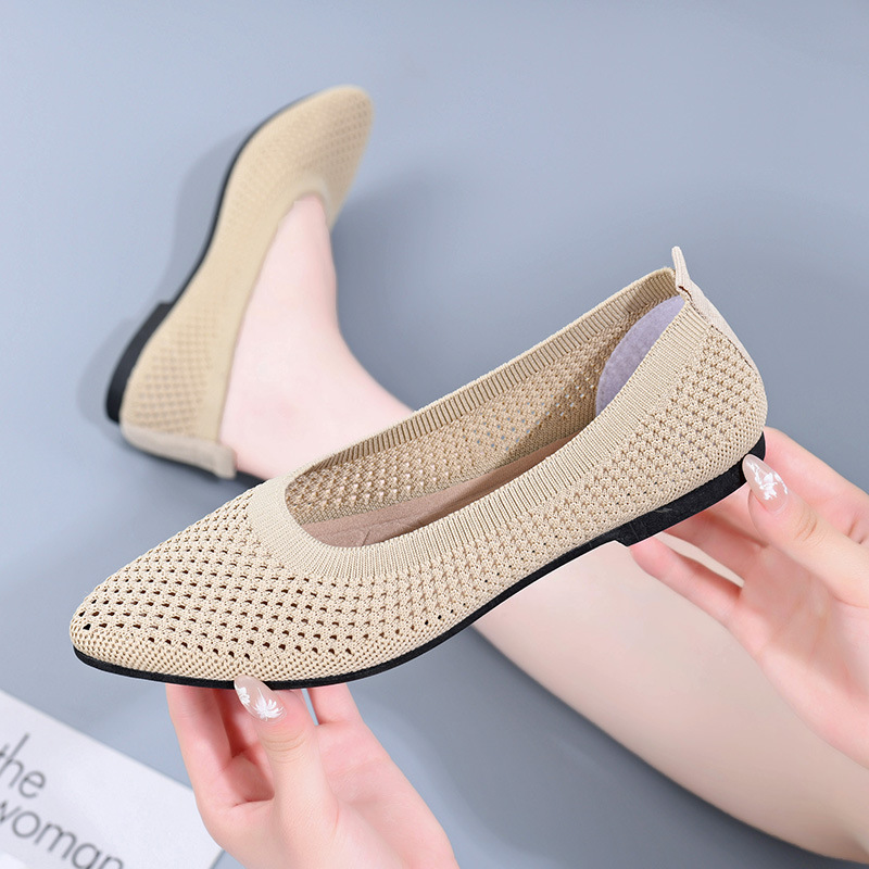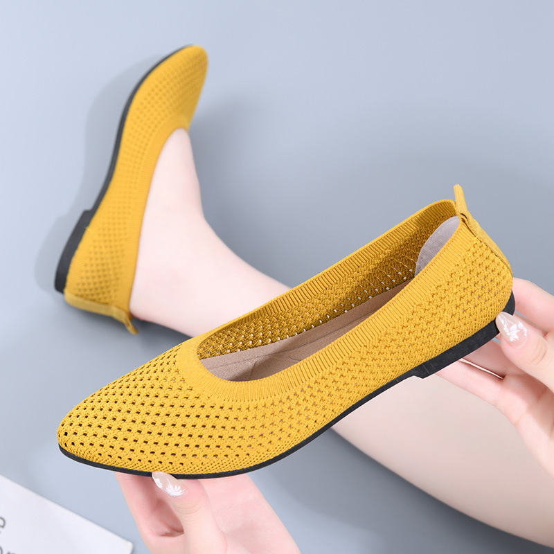 2024 новые летние сплошные остроконечные плоские подошвы мамы одиночные туфли повседневные выпячивания женские полые трикотажные туфли