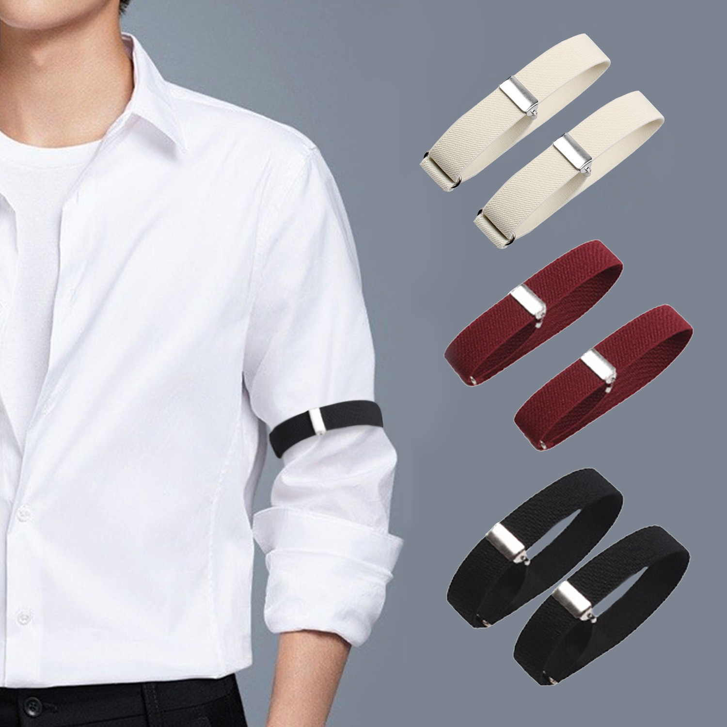 Мужская рубашка шириной 2.5CM сплошной цвет рукавный рукавный браслет, европейский и американский трансграничный эластичный рукавный рукав