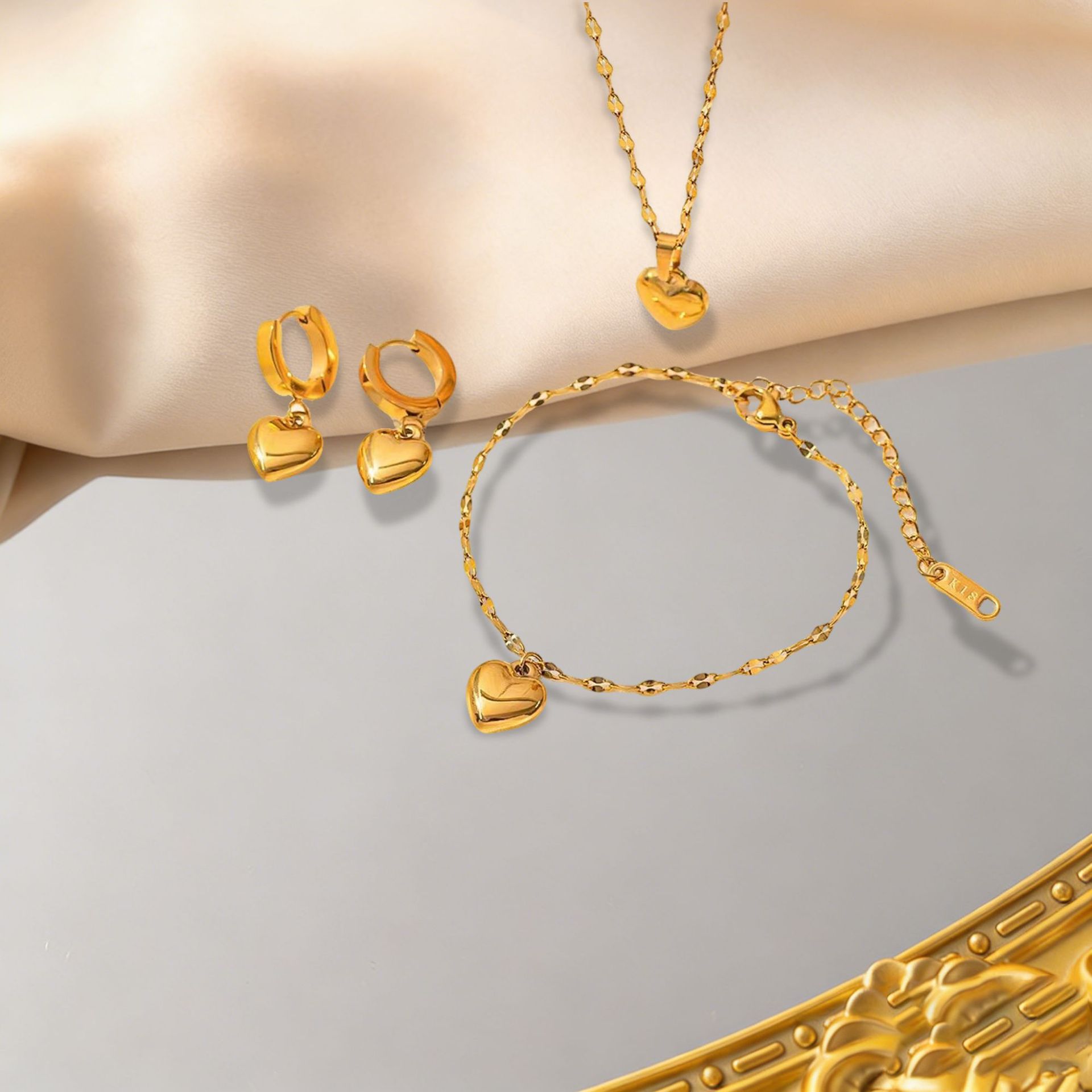 【H691】Трёхмерное ожерелье с золотым персиковым сердцем; 【E09】Трёхмерный браслет с золотым персиковым сердцем; 【G80】Трёхмерные серьги в форме персикового сердца, золото; 【H691+E09+G80】Костюм из трех предметов