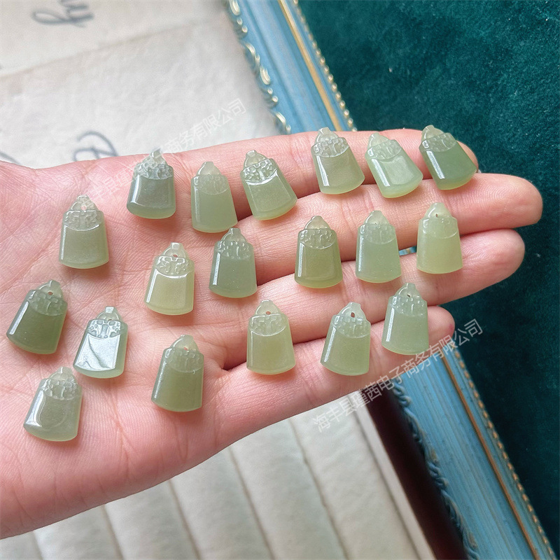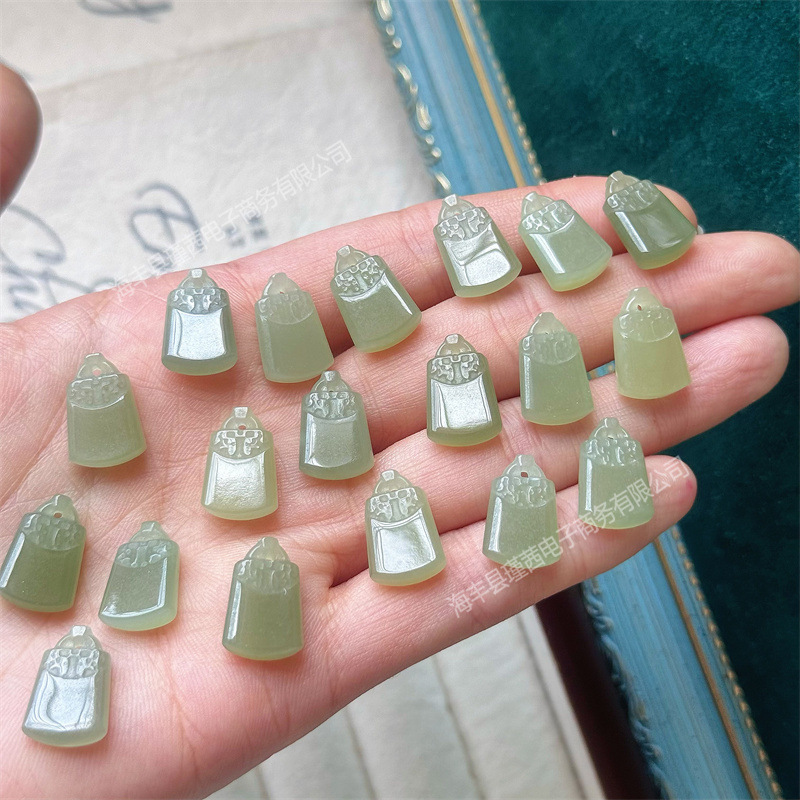 Оптовая продажа натуральный Hutian Jade Bing через небольшой замок богатства небольшой кулон капает DIY аксессуары браслет