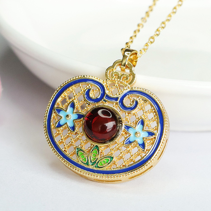 Полый кулон с цветком Ruyi из кровавого янтаря