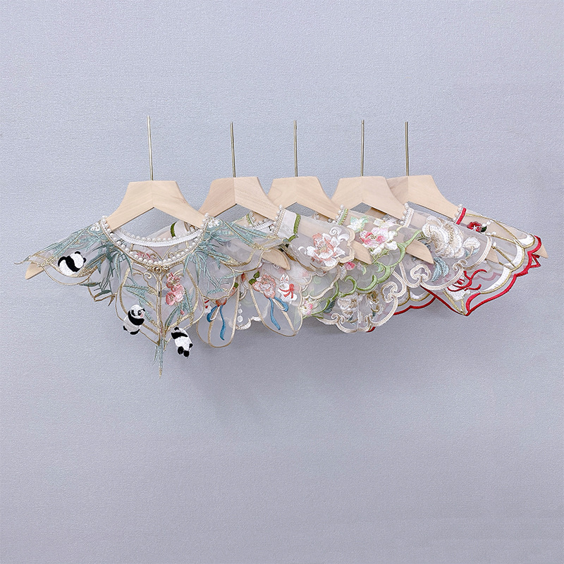 Hanfu Облачные плечи с вышивкой кружева женская девушка лошадь юбка чонсам Тан костюм древний стиль поддельный воротник аксессуары для панды