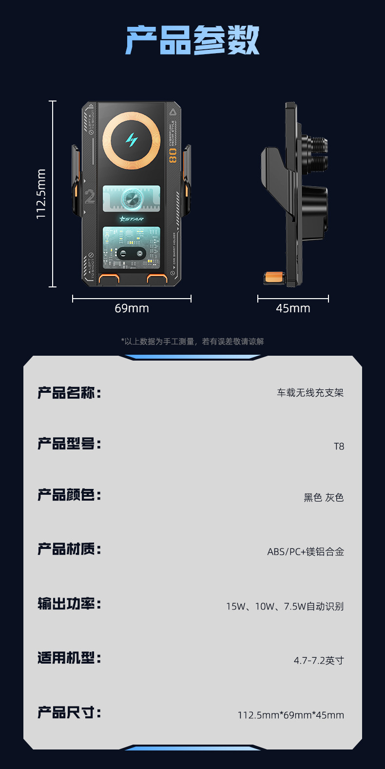 T8 прозрачный стиль автомобильного телефона кронштейн выхода воздуха для выхода инфракрасного индукционного открытия и 15W автомобильная беспроводная зарядка