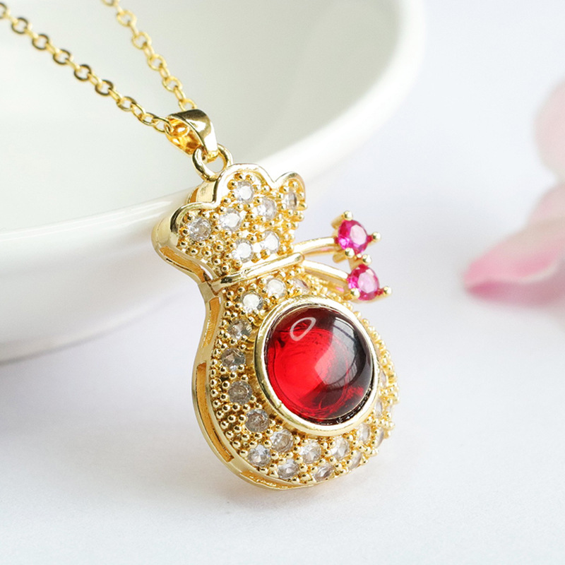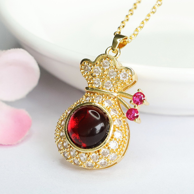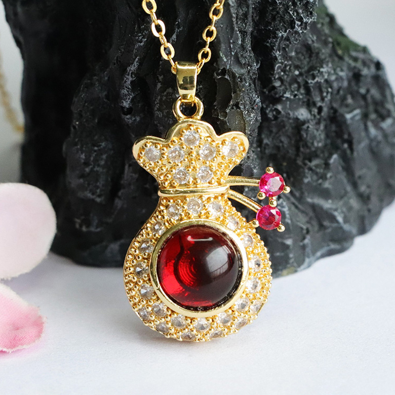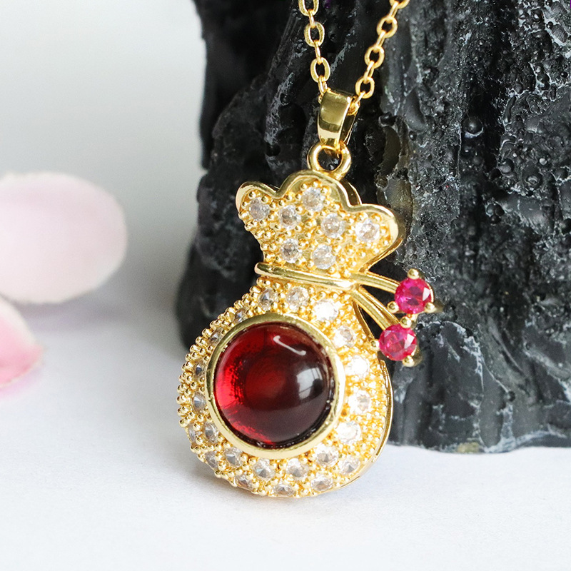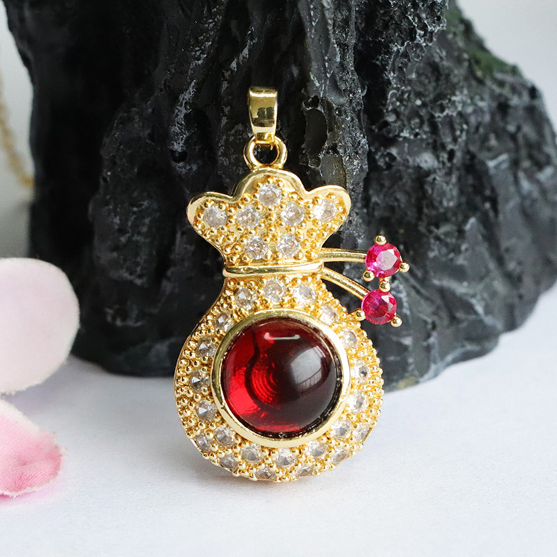 Подвеска-сумка для денег с бриллиантами из кровавого янтаря