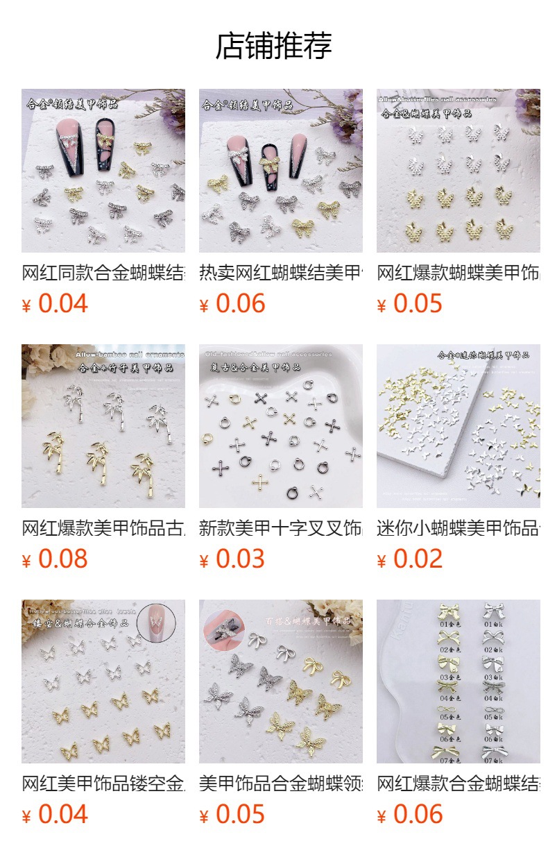 Net Red Hot Продажа маникюра ювелирные изделия из японского сплава трехмерный лук-бабочка для украшения ногтей оптом