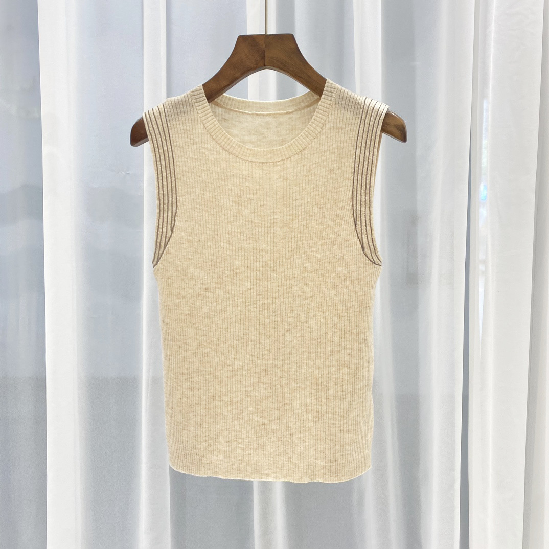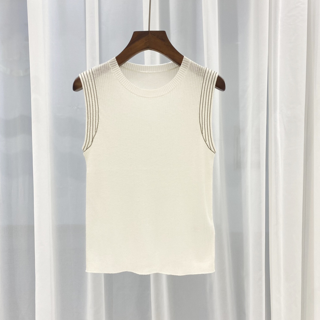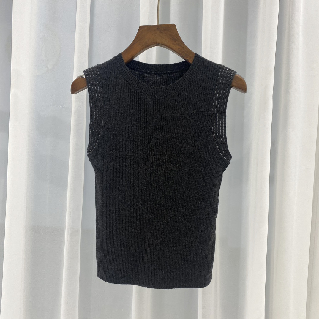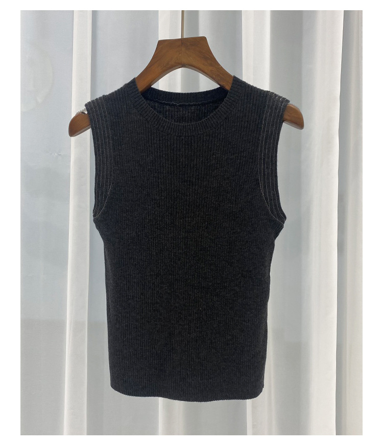 Роскошный продвинутый итальянский BC бисерная цепочка тощий обязательный свитер тонкий эластический без рукавов трикотажный топ женский