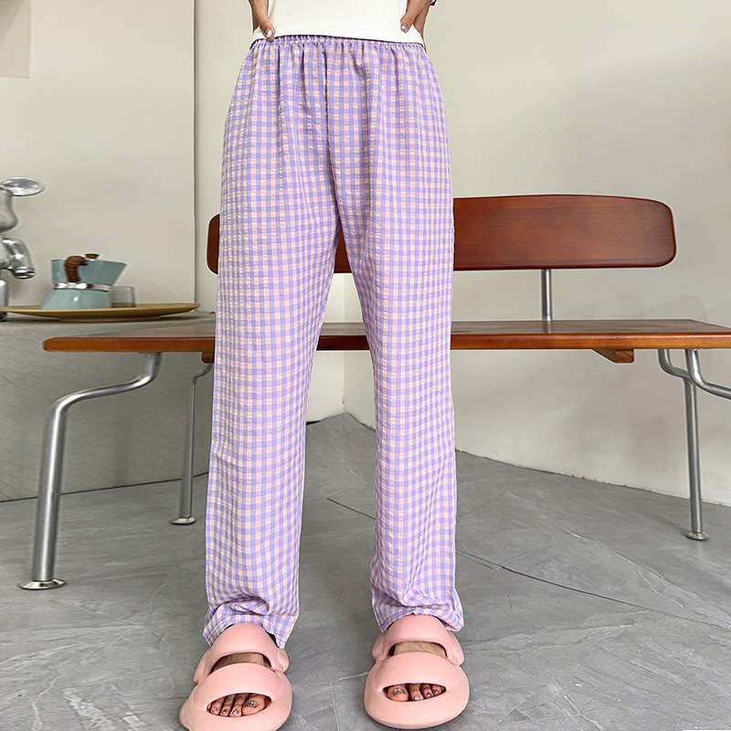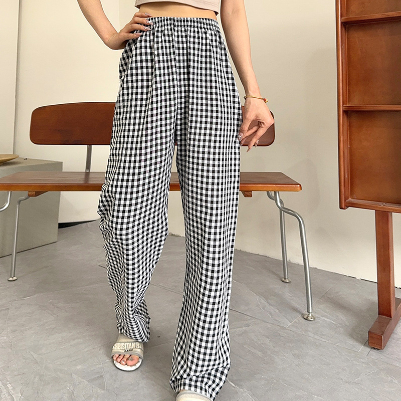 Весна и лето Японские клетчатые брюки повседневные прямые свободные брюки эластина