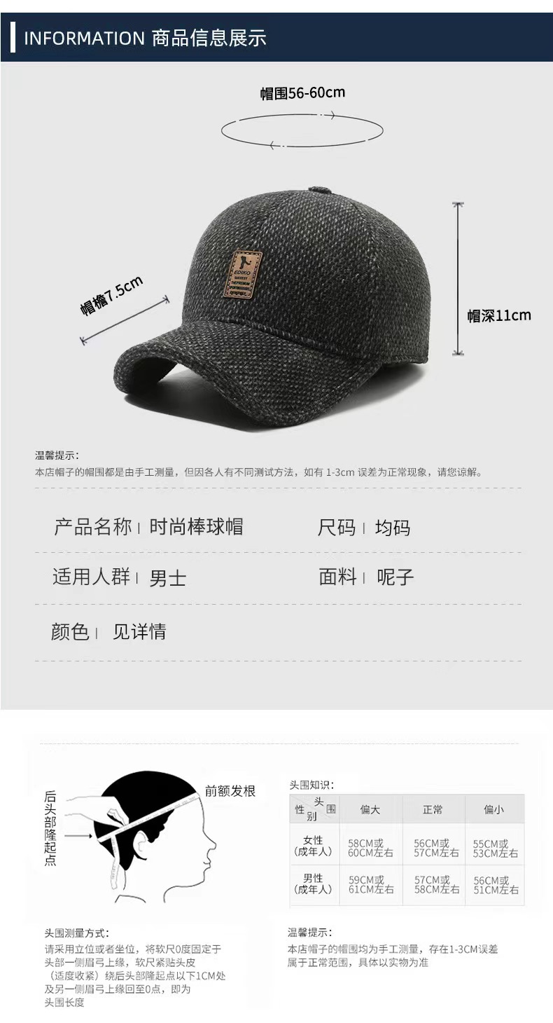 Осенняя и зимняя шерстяная бейсболка из шерстяной ткани