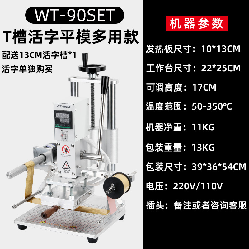 Новая марка машины для горячего тиснения большого размера 90S; Новая автоматическая машина для приема бумаги и горячего тиснения большого размера 90SE.; Новое поступление, многофункциональная машина для горячего тиснения с Т-образным пазом, автоматический сбор бумаги; Новая машина для горячего тиснения типа WT90SE с выдвижным ящиком; Новая машина для горячего тиснения WT90SE с точной настройкой; Машина с медной головкой для быстрой смены формы; Машина с медной головкой для быстрой смены формы + верстак для готовой продукции; Специальная бумага для горячего тиснения кожи