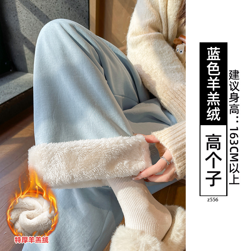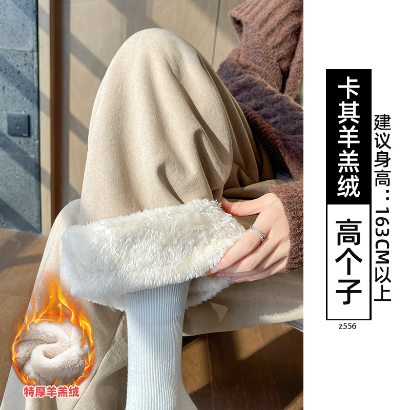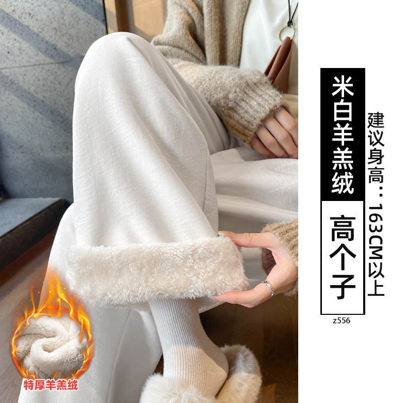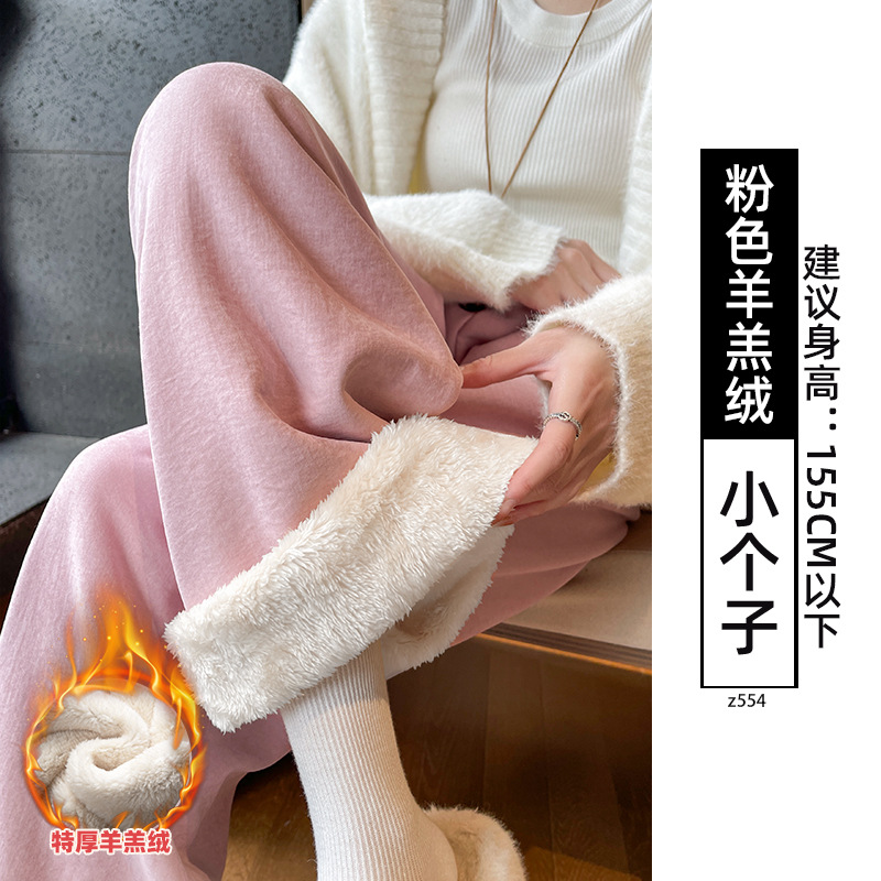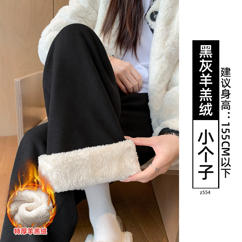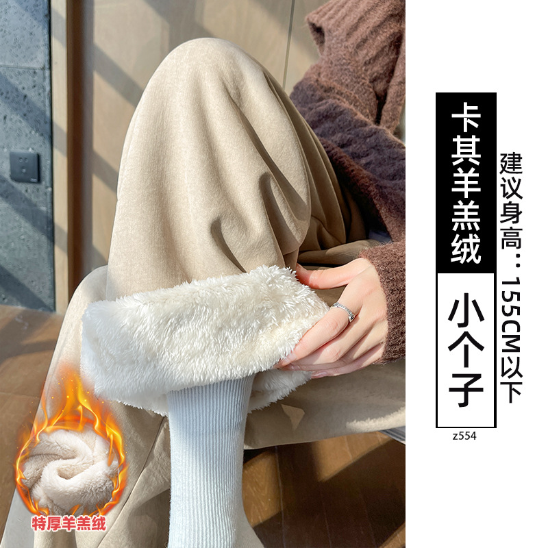 Женские брюки из овечьей шерсти, осенне-зимние, утепленные хлопковые брюки, новинка 2025 года, повседневные прямые брюки с широкими штанинами для миниатюрных женщин.