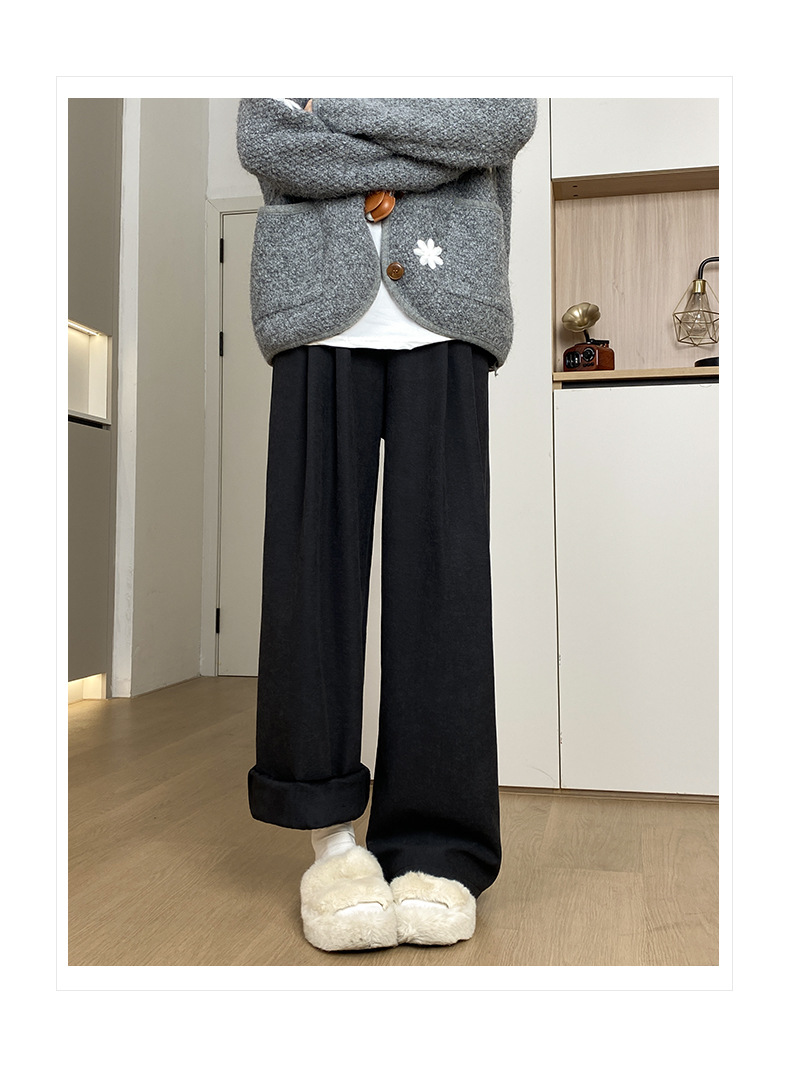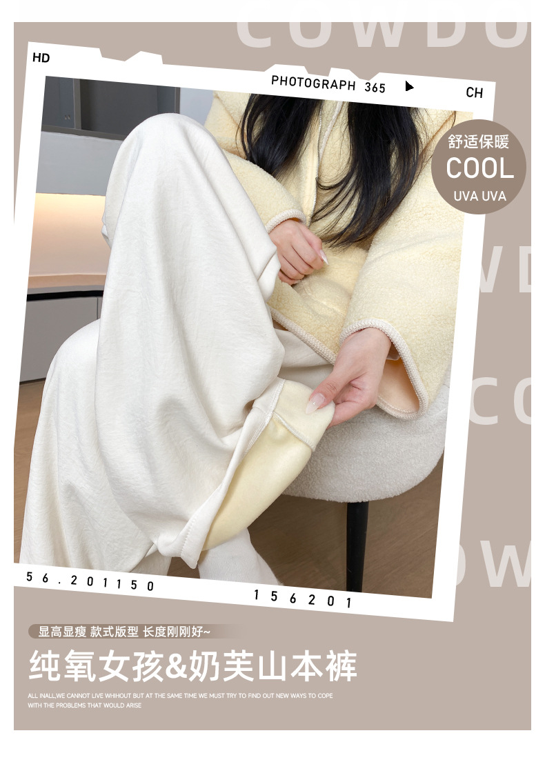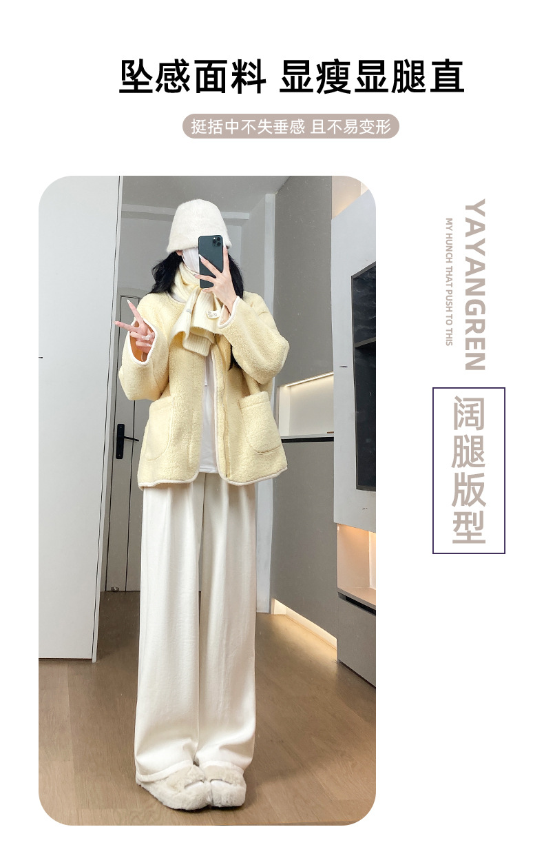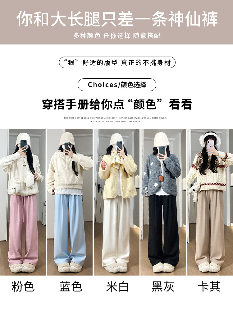 Женские брюки из овечьей шерсти, осенне-зимние, утепленные хлопковые брюки, новинка 2025 года, повседневные прямые брюки с широкими штанинами для миниатюрных женщин.